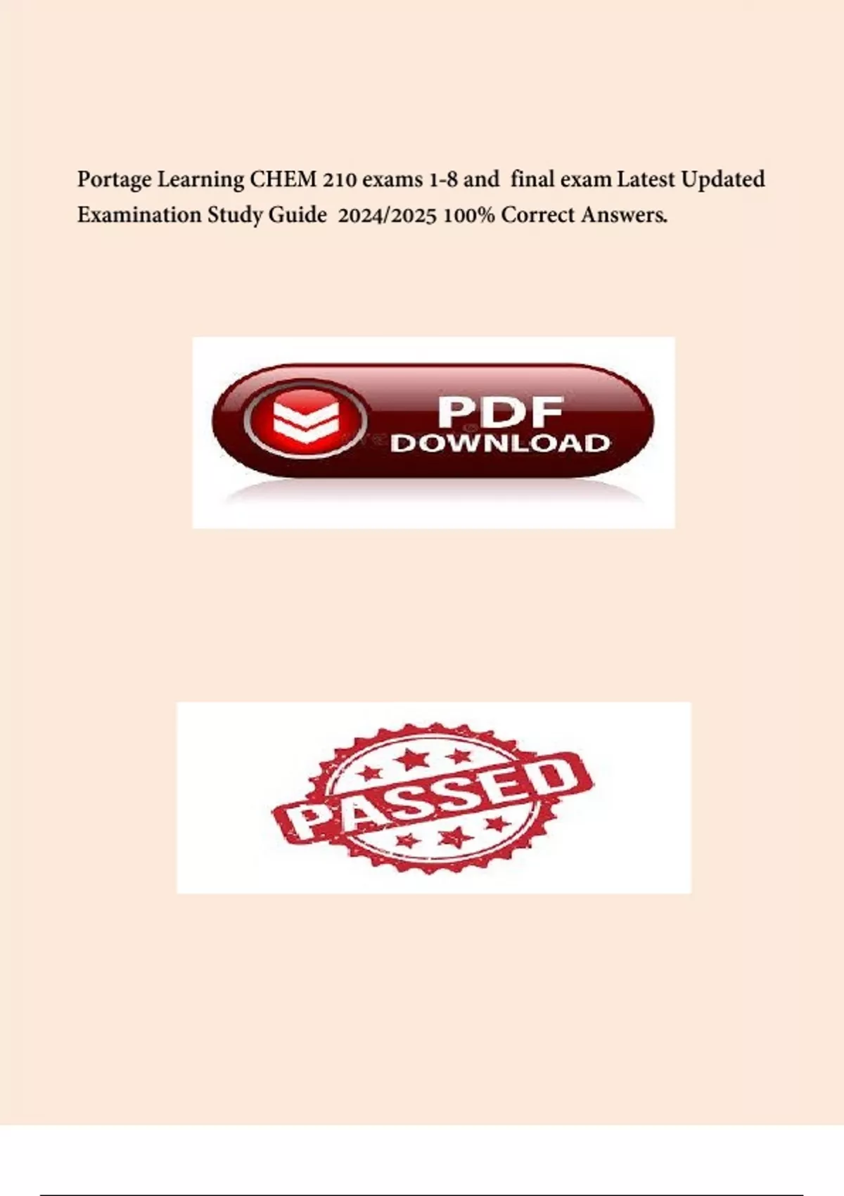 Portage Learning CHEM 210 exams 1-8 and final exam Latest Updated Examination Study Guide 2024/2025 100% Correct Answers.