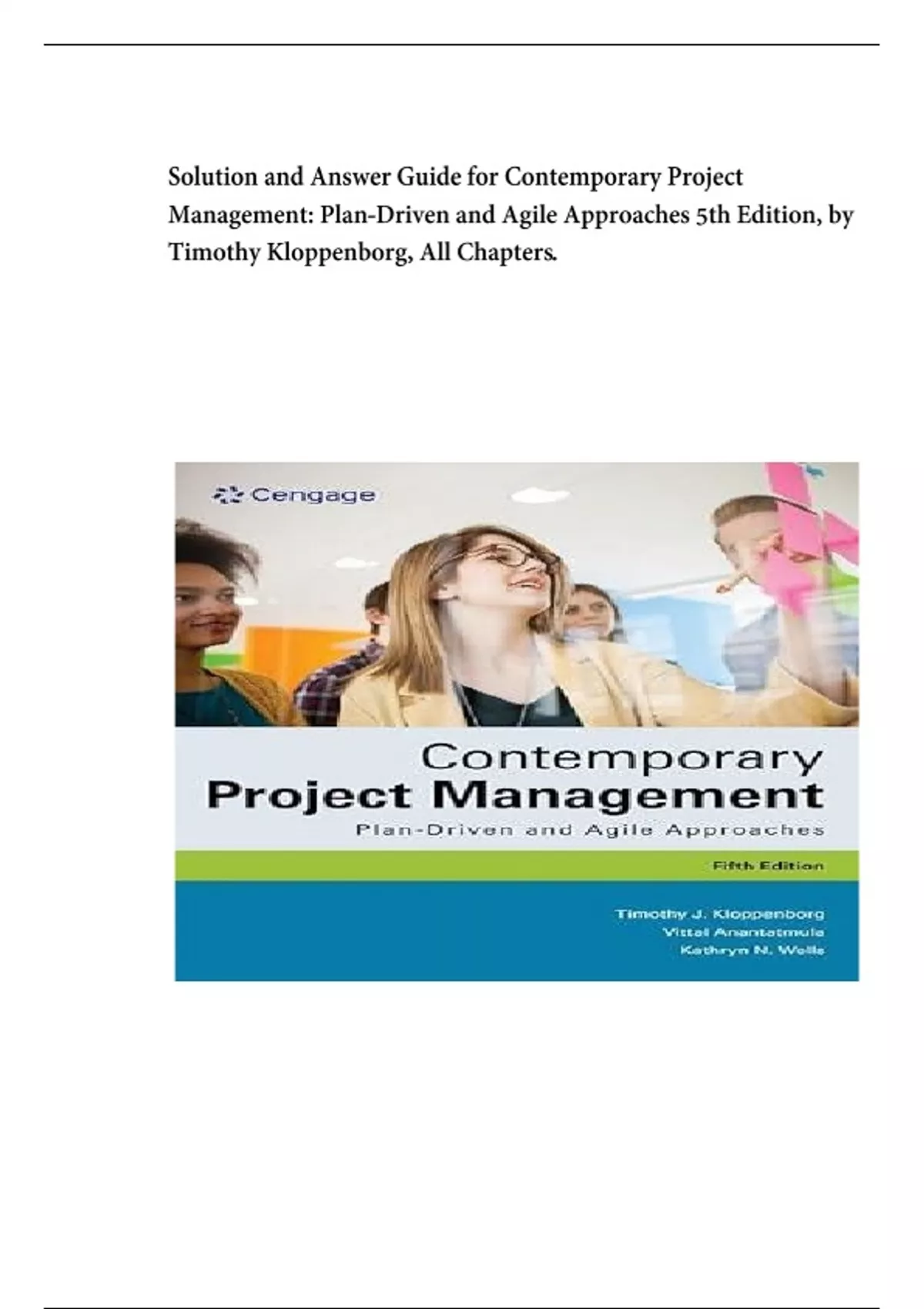 Solution and Answer Guide for Contemporary Project Management: Plan-Driven and Agile Approaches 5th Edition, by Timothy Kloppenborg, All Chapters