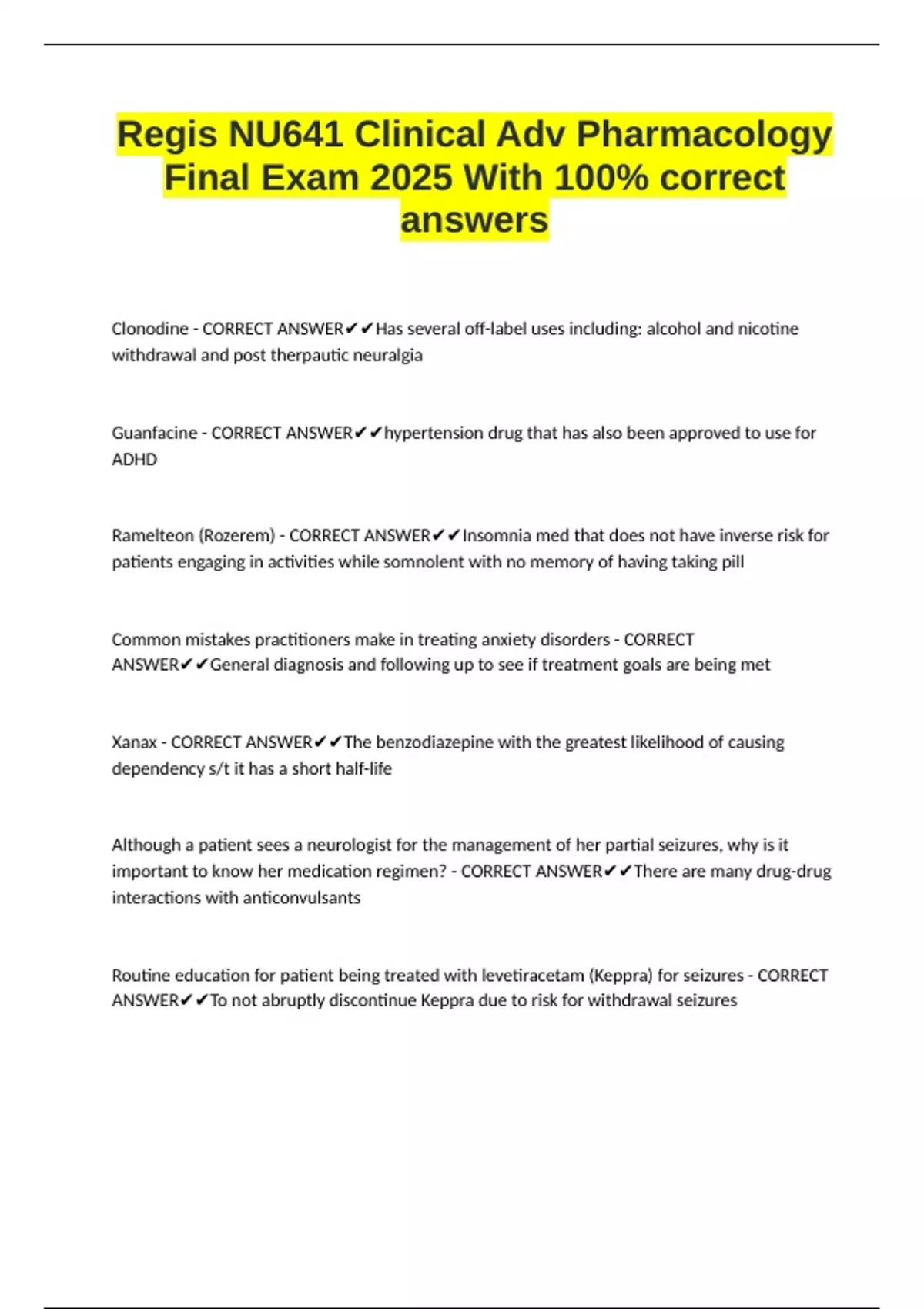 Clonodine - CORRECT ANSWER✔✔Has several off-label uses including: alcohol and nicotine