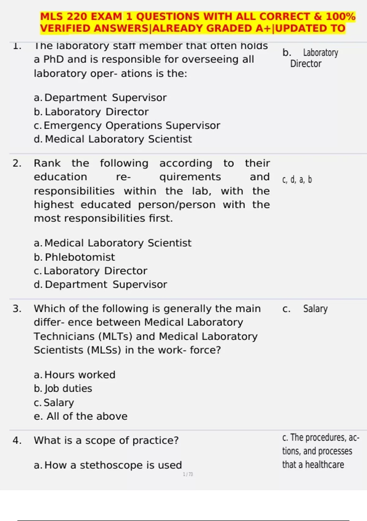 , MLS 220 EXAM 1 QUESTIONS WITH ALL CORRECT & 100%