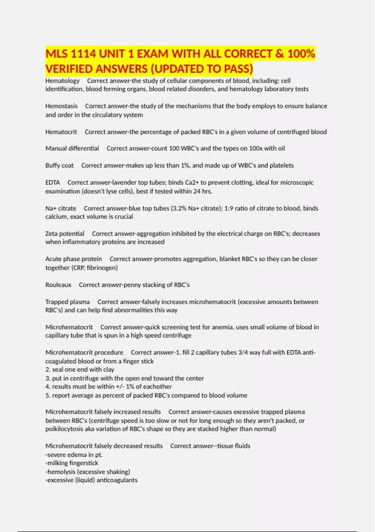 Microhematocrit falsely increased results Correct answer-causes excessive trapped plasma