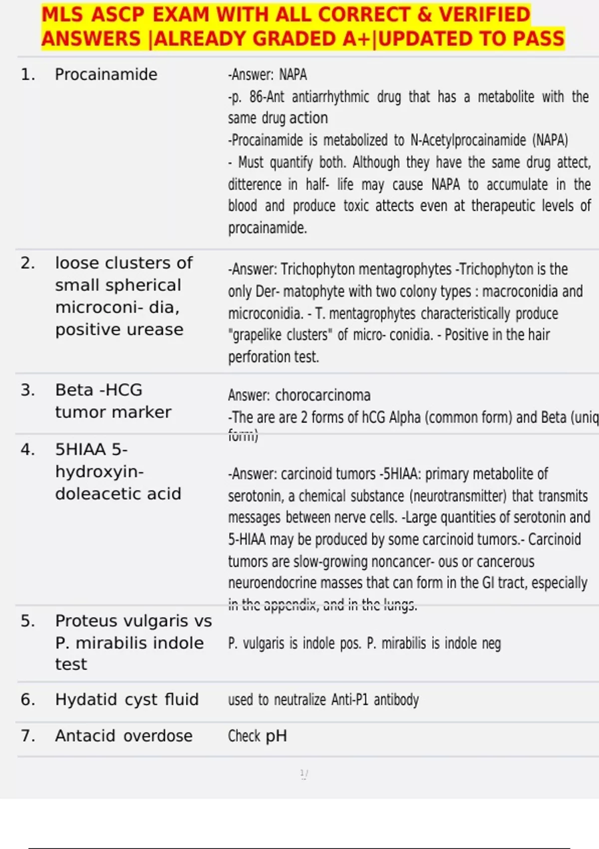 , MLS ASCP EXAM WITH ALL CORRECT & VERIFIED