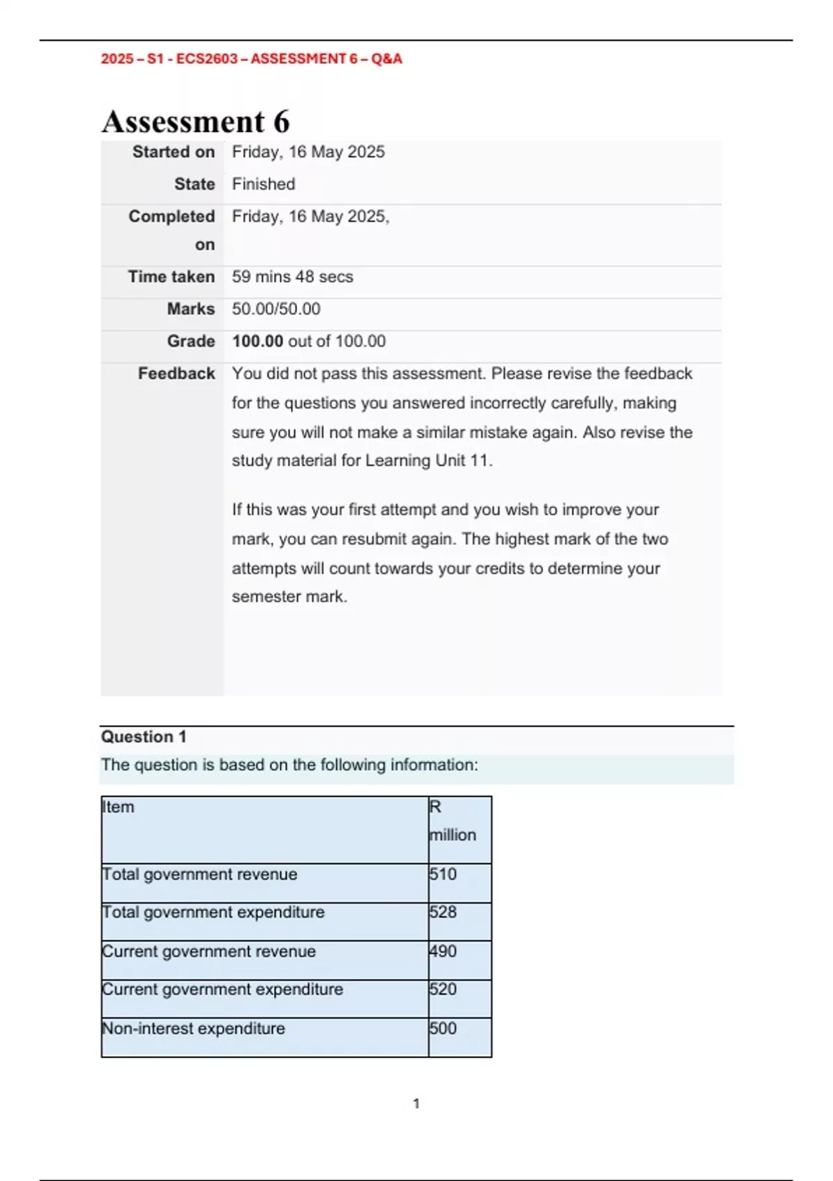 , 2025 – S1 - ECS2603 – ASSESSMENT 6 – Q&A