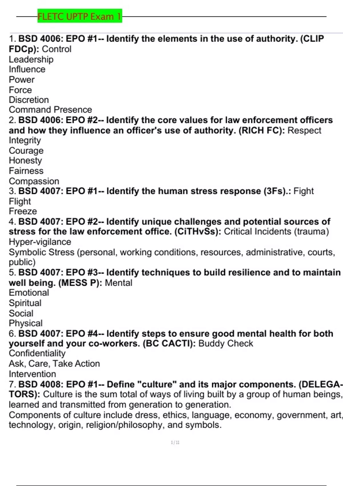 1. BSD 4006: EPO #1-- Identify the elements in the use of authority. (CLIP