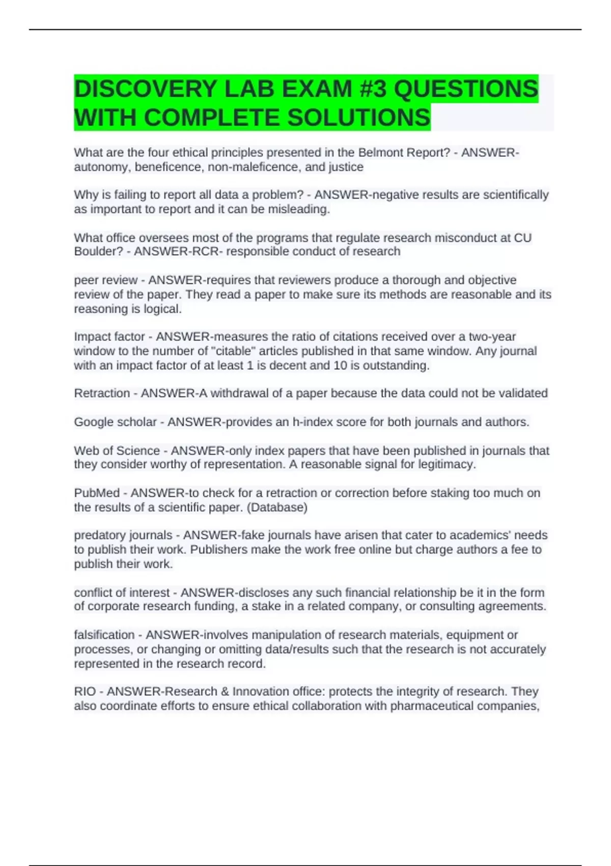 DISCOVERY LAB EXAM #3 QUESTIONS