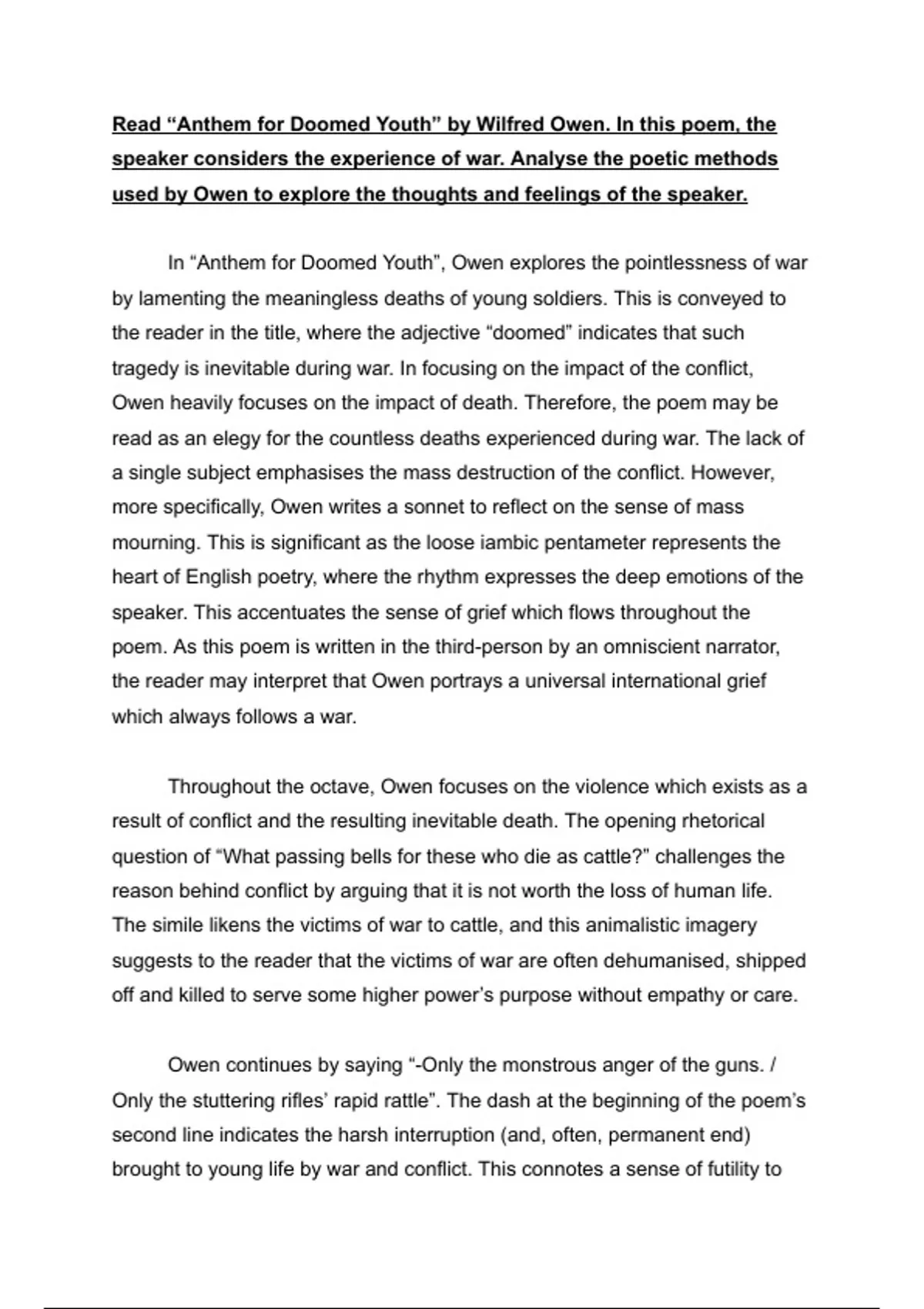 Essay- Unseen Poetry- "Anthem for Doomed Youth" (Wilfred Owen)