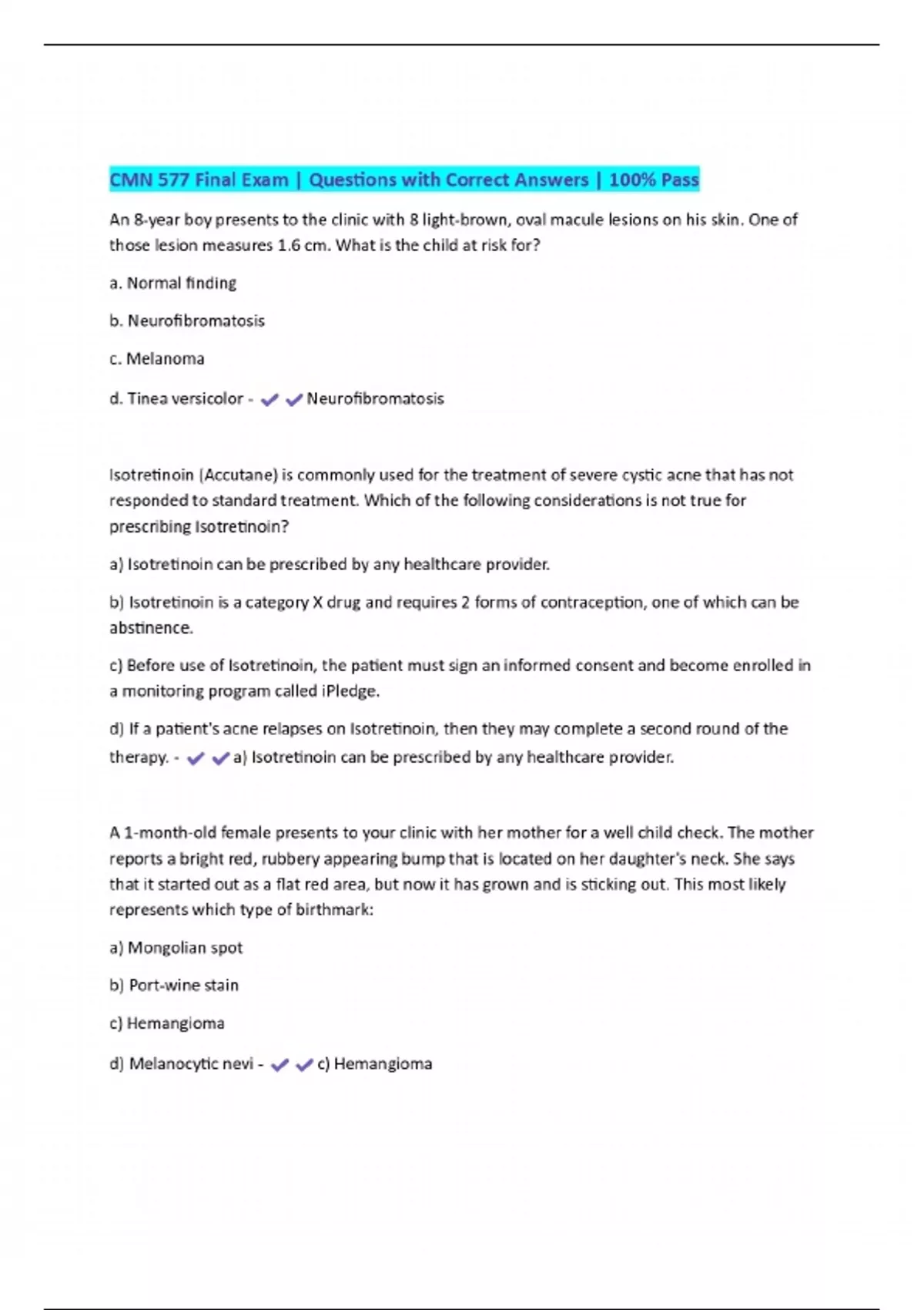cmn 577 final exam questions with correct answer