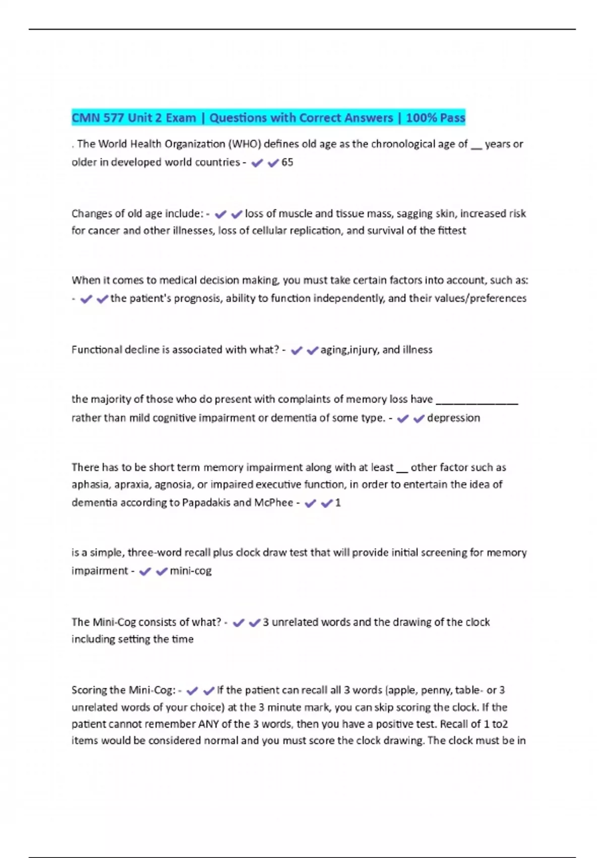 CMN 577 Unit 2 Exam | Questions with Correct Answers | 100% Pass