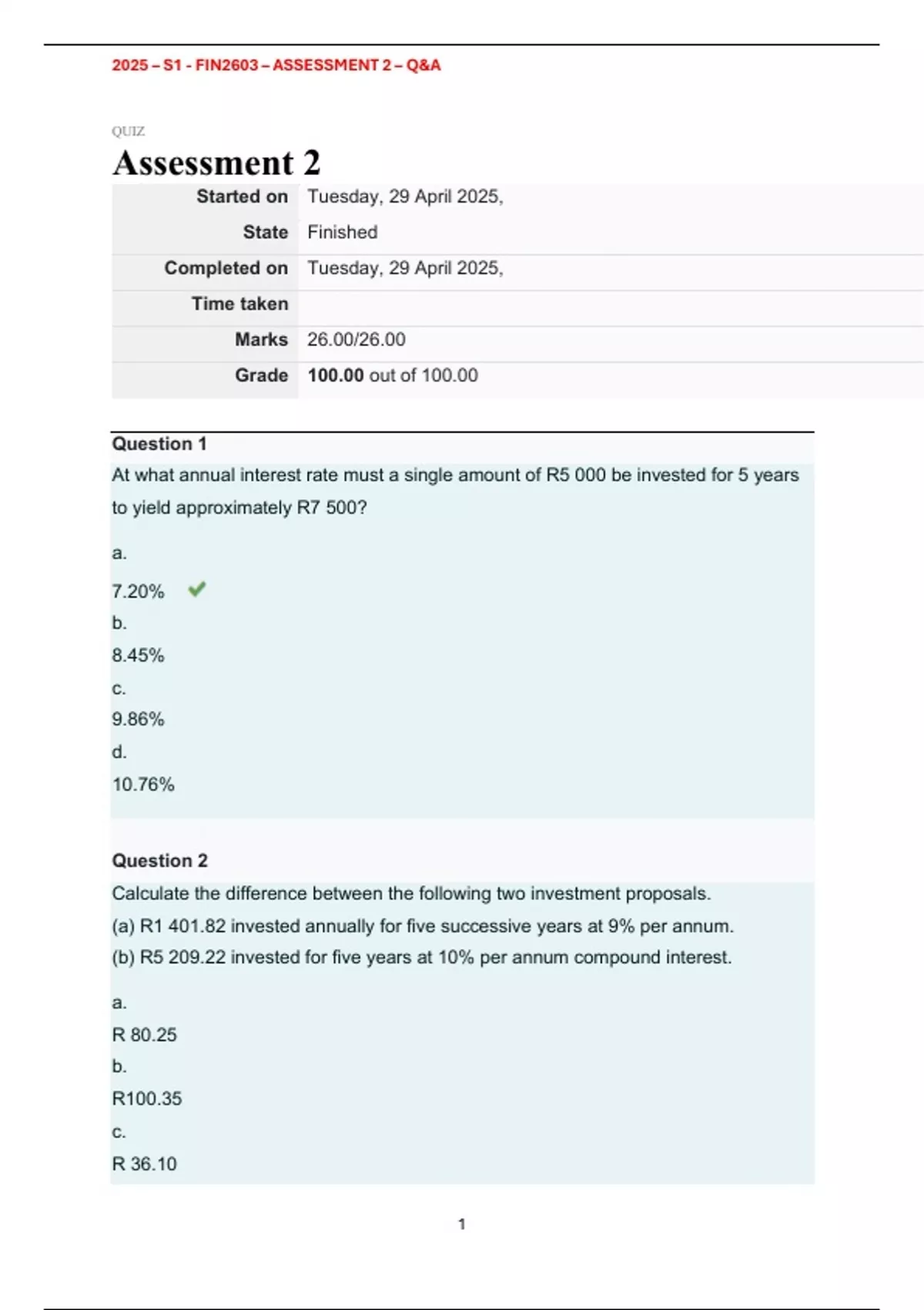 , 2025 – S1 - FIN2603 – ASSESSMENT 2 – Q&A