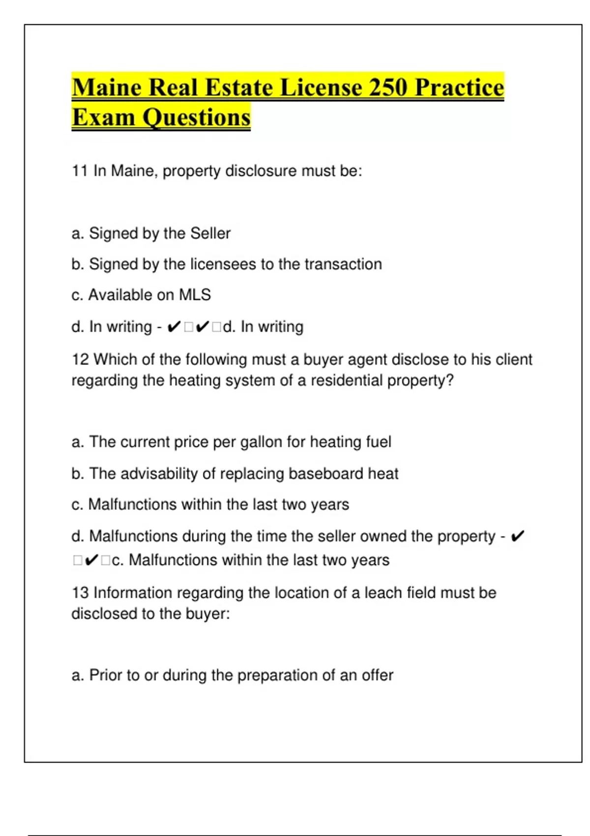 d. Orally during the initial showing of the property - ✔ ✔ a.