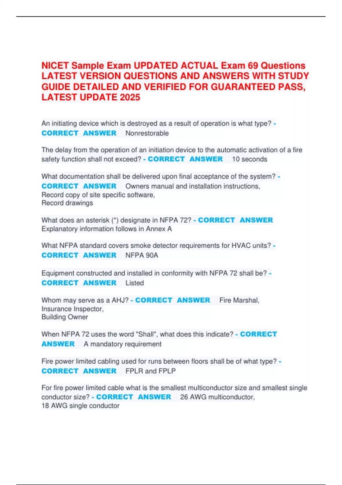 CORRECT ANSWER NFPA 90A