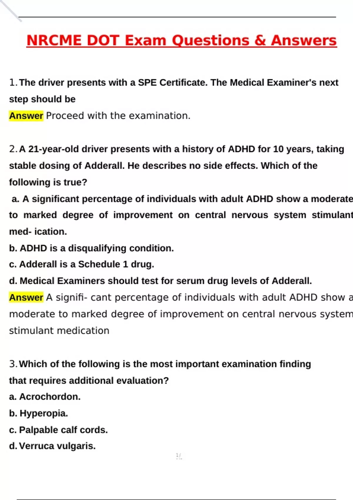1.The driver presents with a SPE Certificate. The Medical Examiner's next
