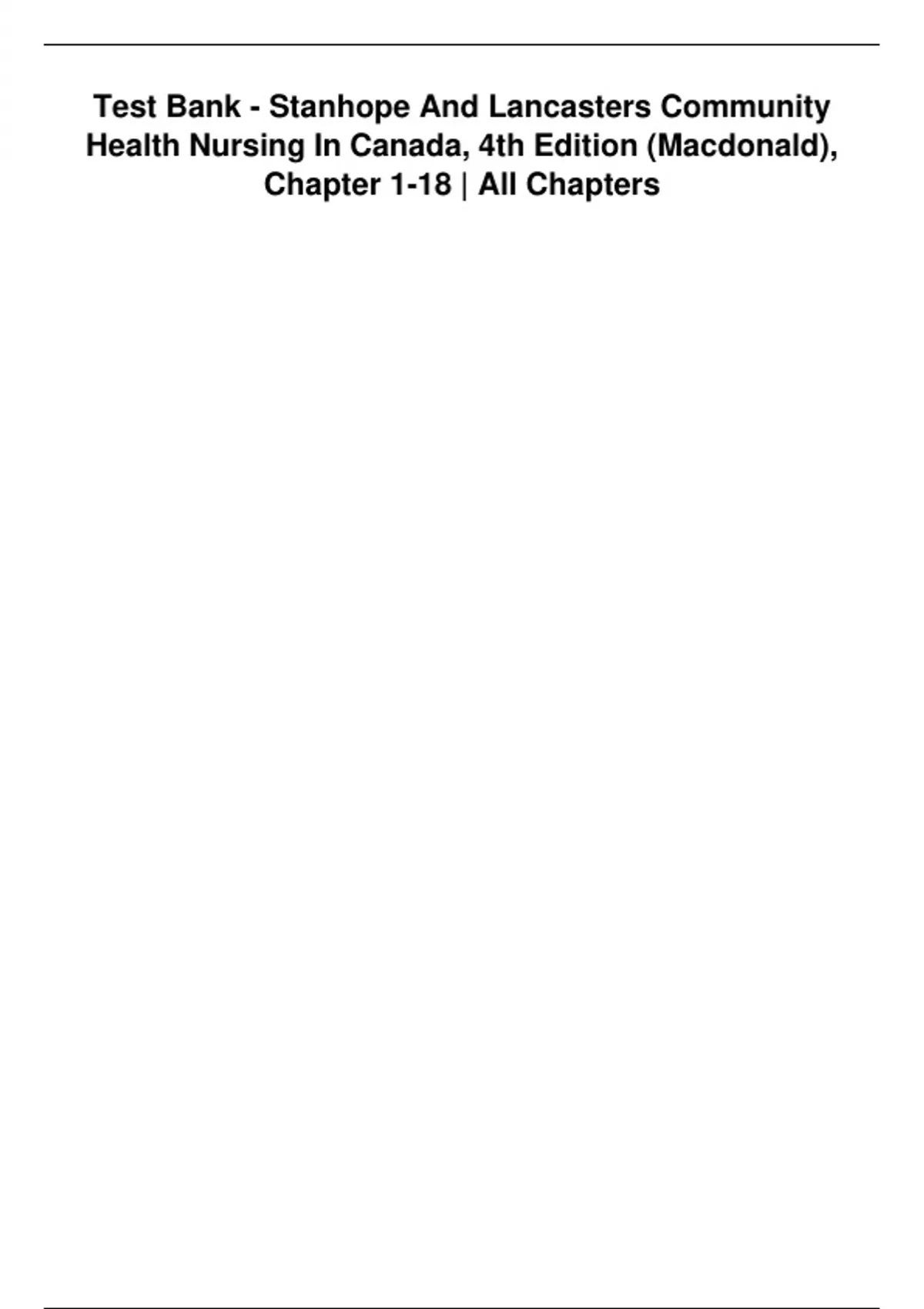 Test Bank - Stanhope and Lancaster’s Community Health Nursing in Canada, 4th Edition (MacDonald, 2022)