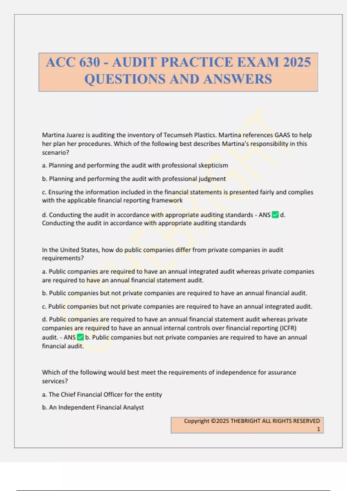audit. - ANS b. Public companies but not private companies are required to have an annual
