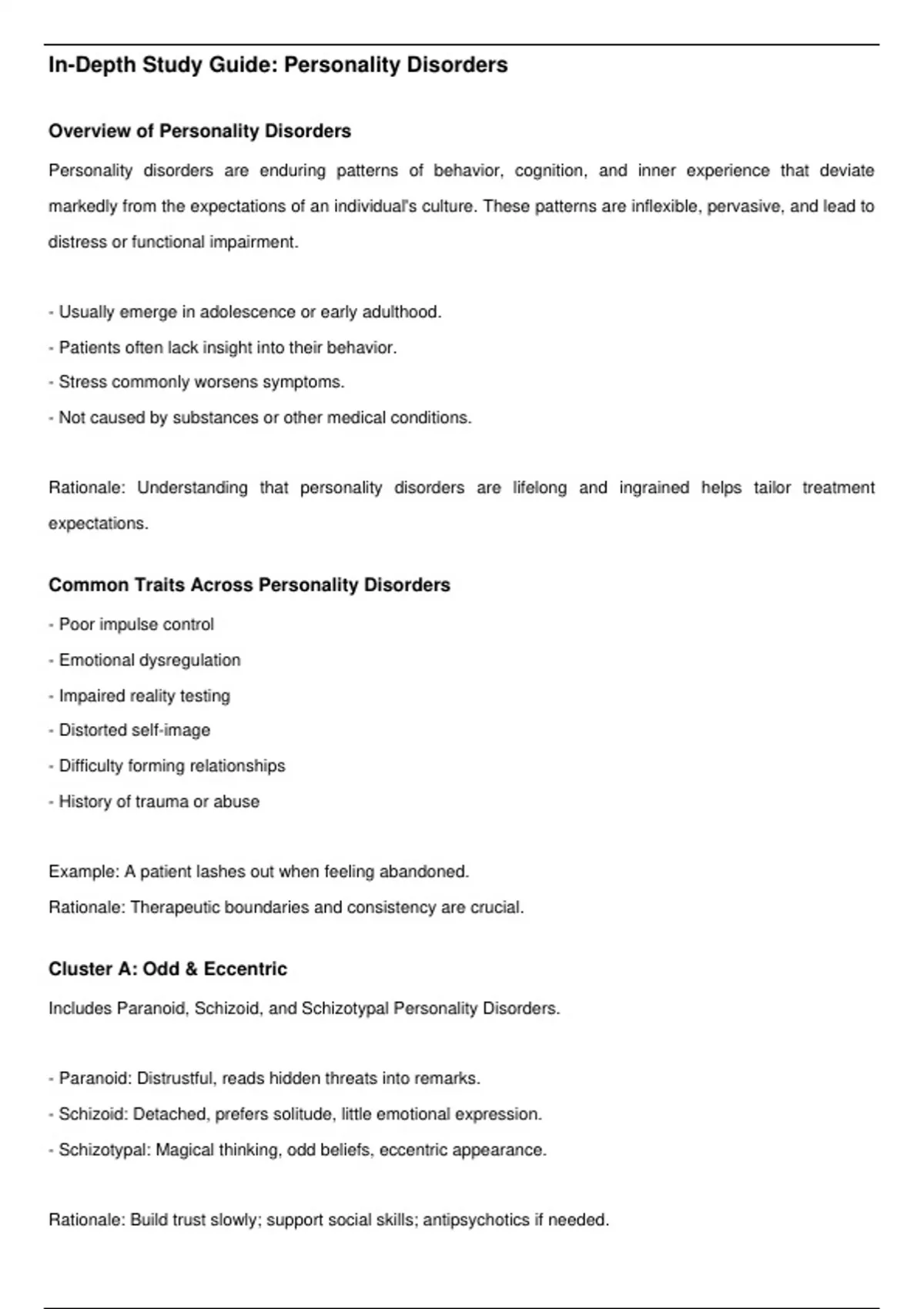 Rationale: Understanding that personality disorders are lifelong and ingrained helps tailor treatment
