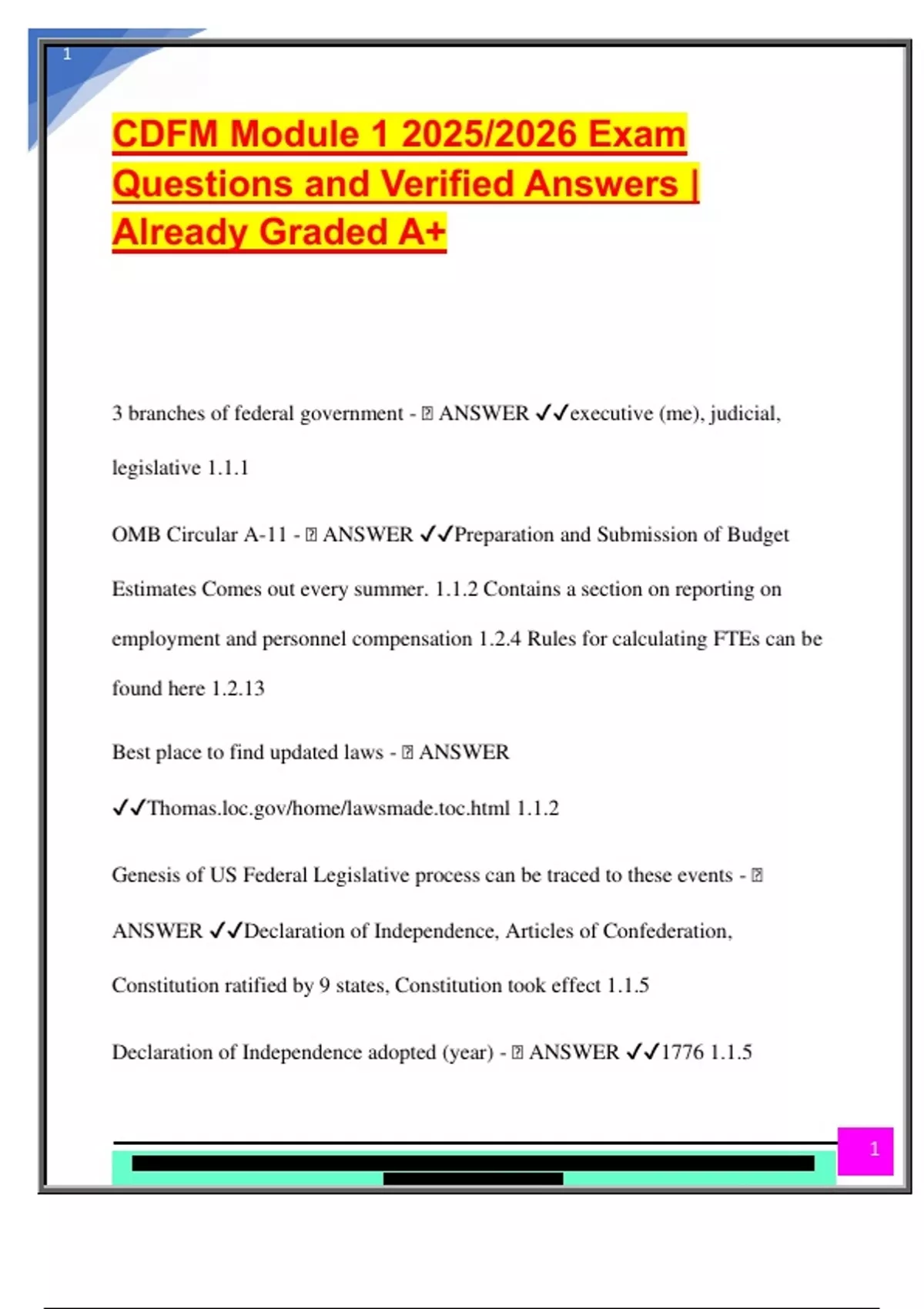 Declaration of Independence adopted (year) - 🧠 ANSWER ✔✔1776 1.1.5