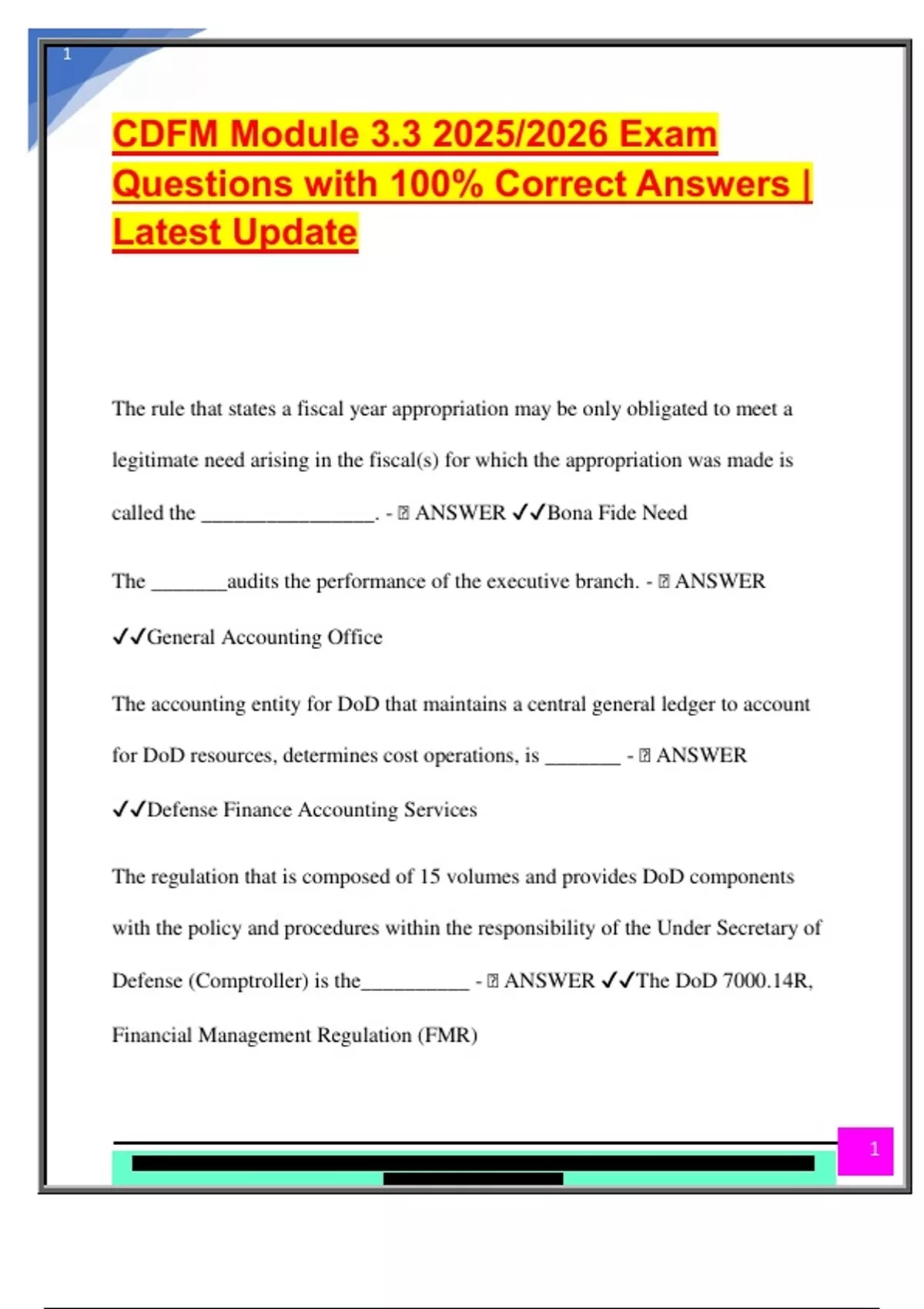 CDFM Module 3.3 2025/2026 Exam Questions with 100% Correct Answers | Latest Update