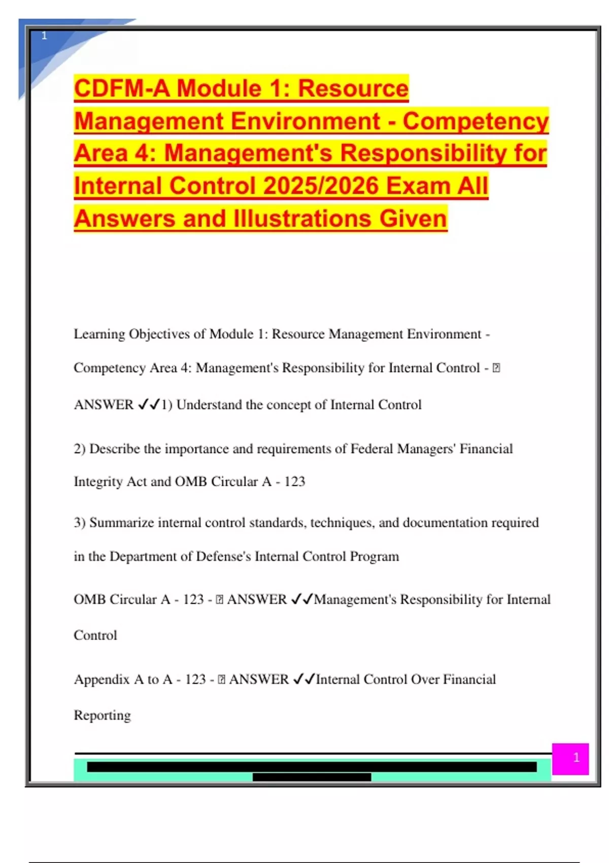Internal Control Guidance Consists of: - 🧠 ANSWER ✔✔1) The Federal Manager's