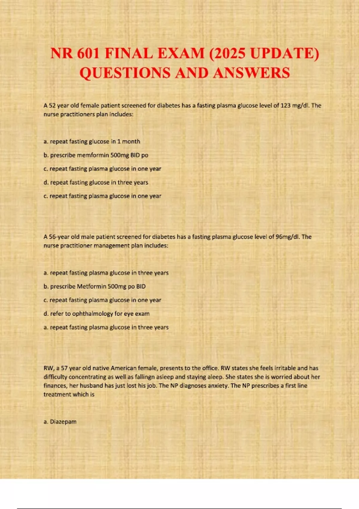 NR 601 FINAL EXAM (2025 UPDATE) QUESTIONS AND ANSWERS