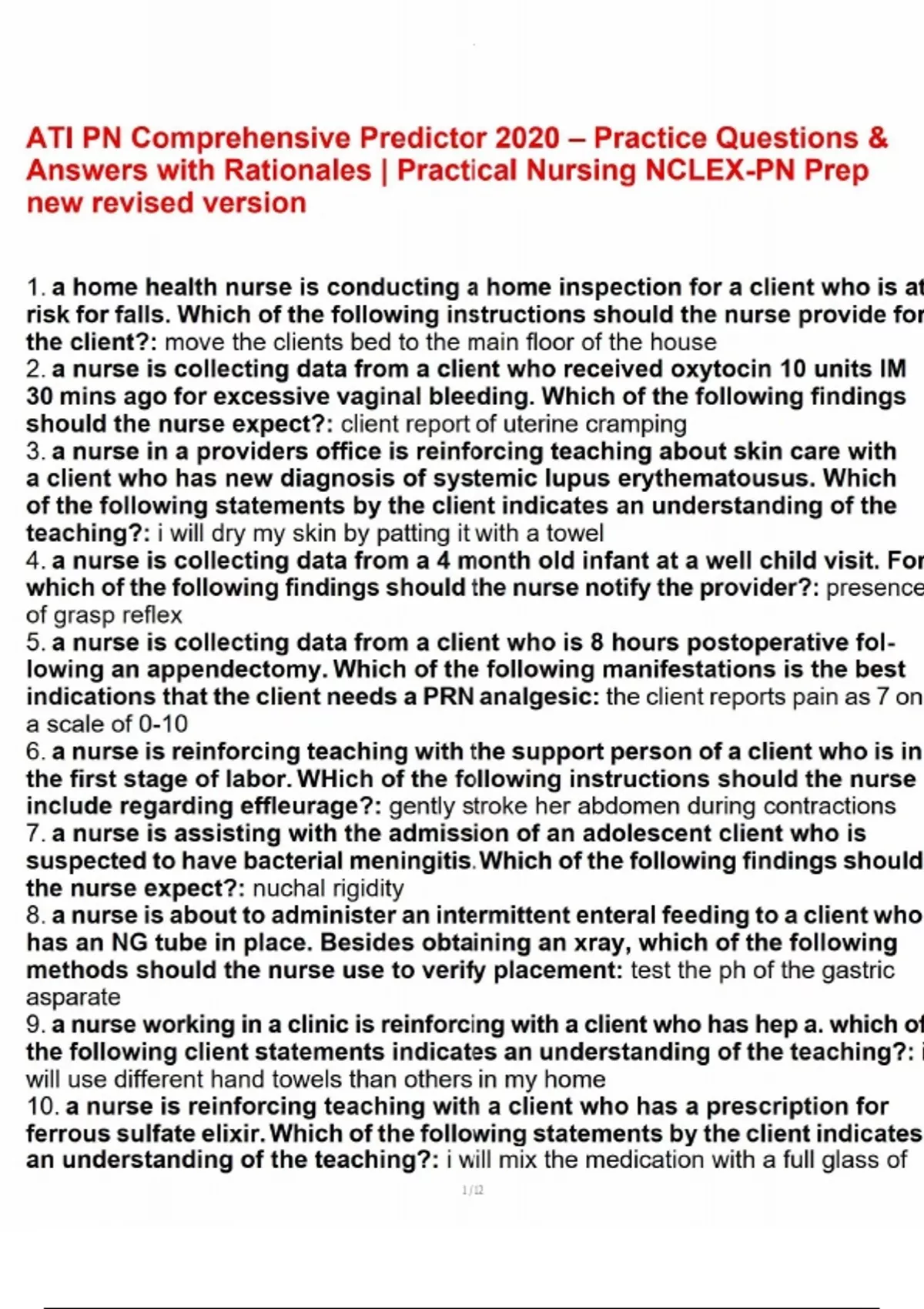 ATI PN Comprehensive Predictor 2020 – Practice Questions & Answers with Rationales Practical Nursing NCLEX-PN Prep new revised ATI PN Comprehensive Predictor 2020 – Practice Questions & Answers with Rationales Practical Nursing NCLEX-PN Prep new revised ATI PN Comprehensive Predictor 2020 – Practice Questions & Answers with Rationales Practical Nursing NCLEX-PN Prep new revised