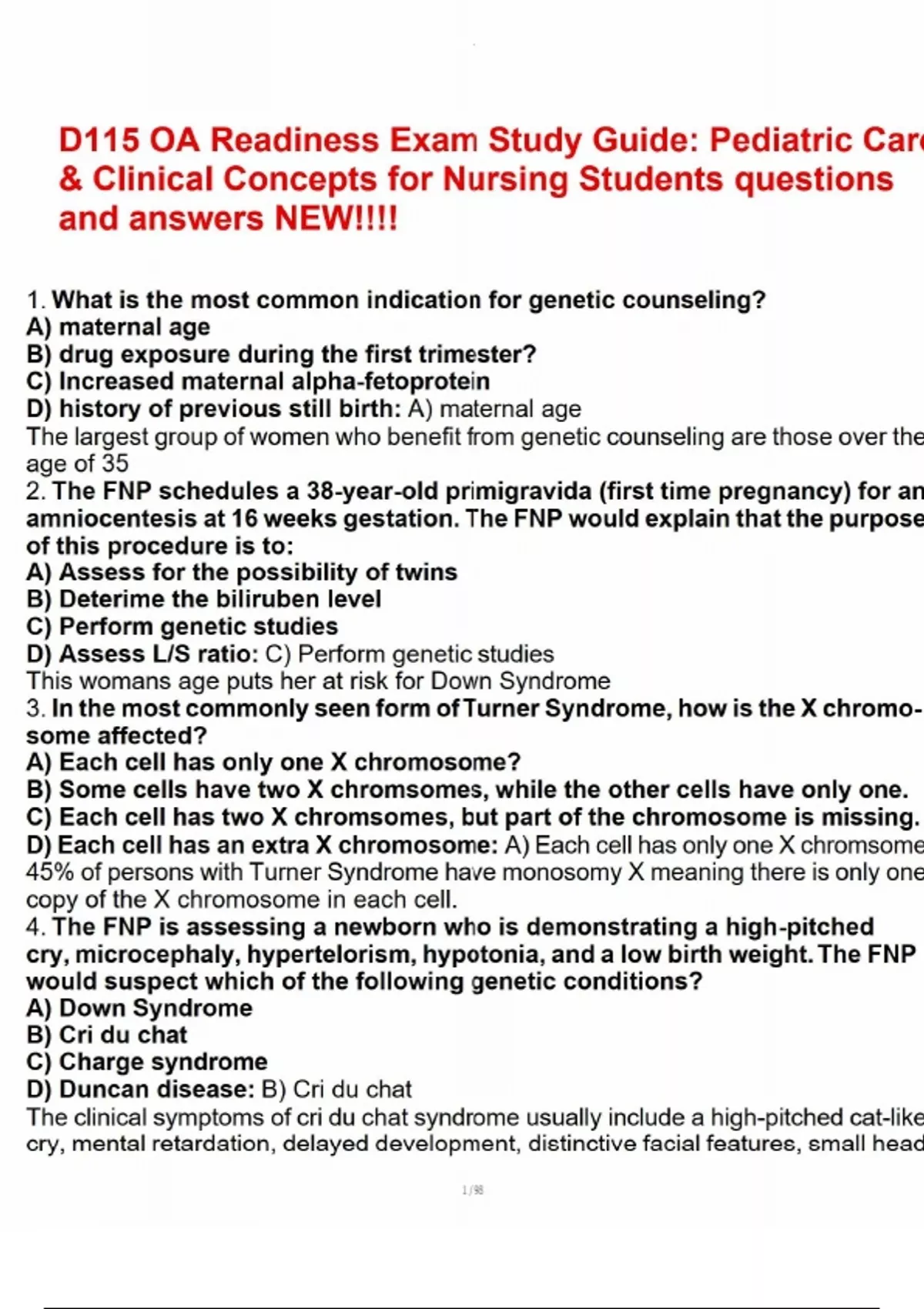 D115 OA Readiness Exam Study Guide Pediatric Care & Clinical Concepts for Nursing S D115 OA Readiness Exam Study Guide Pediatric Care & Clinical Concepts for Nursing S D115 OA Readiness Exam Study Guide Pediatric Care & Clinical Concepts for Nursing S D115 OA Readiness Exam Study Guide Pediatric Care & Clinical Concepts for Nursing S