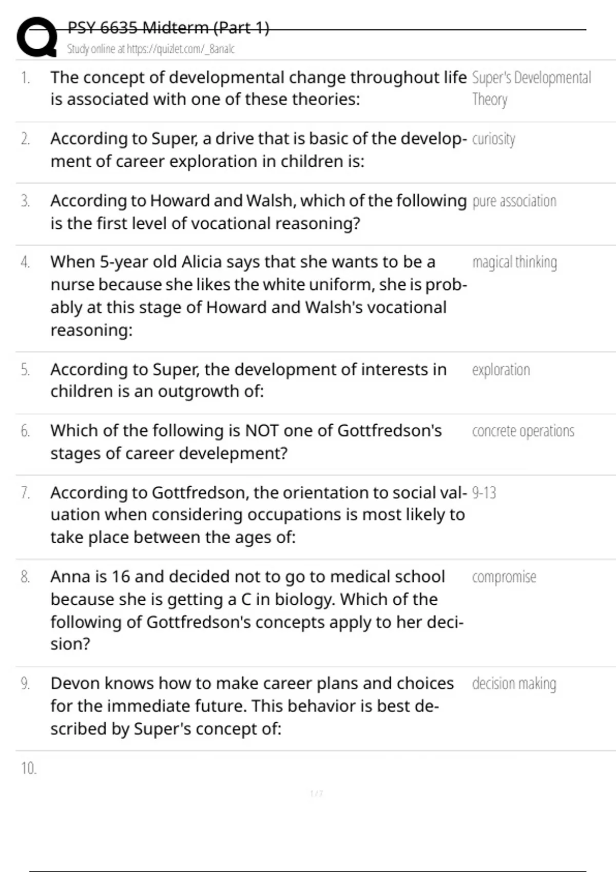 6. Which of the following is NOT one of Gottfredson's concrete operations