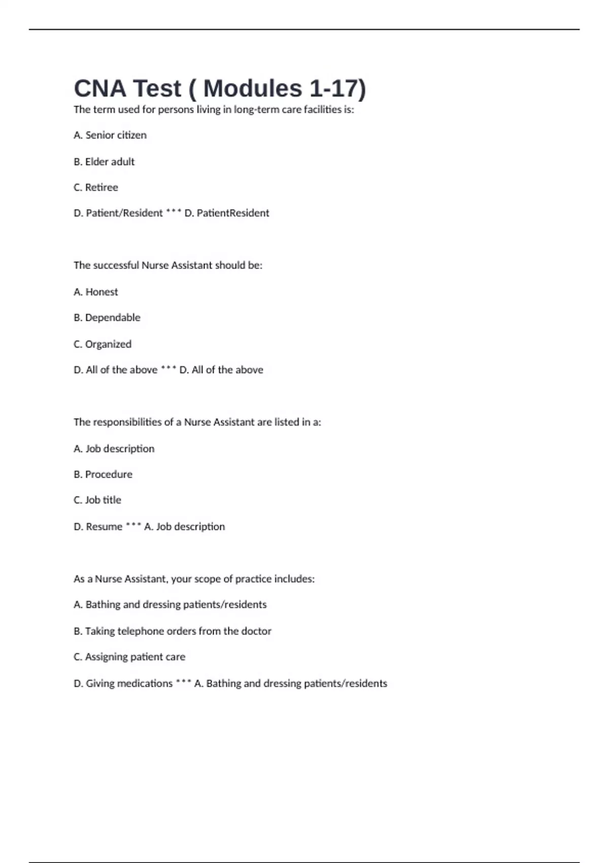 CNA Test (Modules 1-17). 200 Questions And Answers