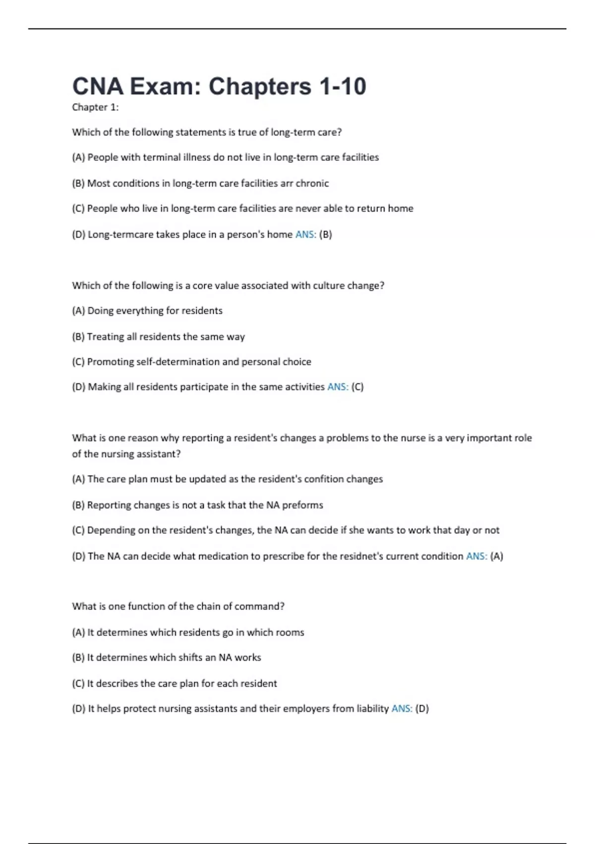 CNA Exam: Chapters 1-10. Questions and answers. latest 2025/2026 CNA Exam: Chapters 1-10. Questions and answers. latest 2025/2026 CNA Exam: Chapters 1-10. Questions and answers. latest 2025/2026
