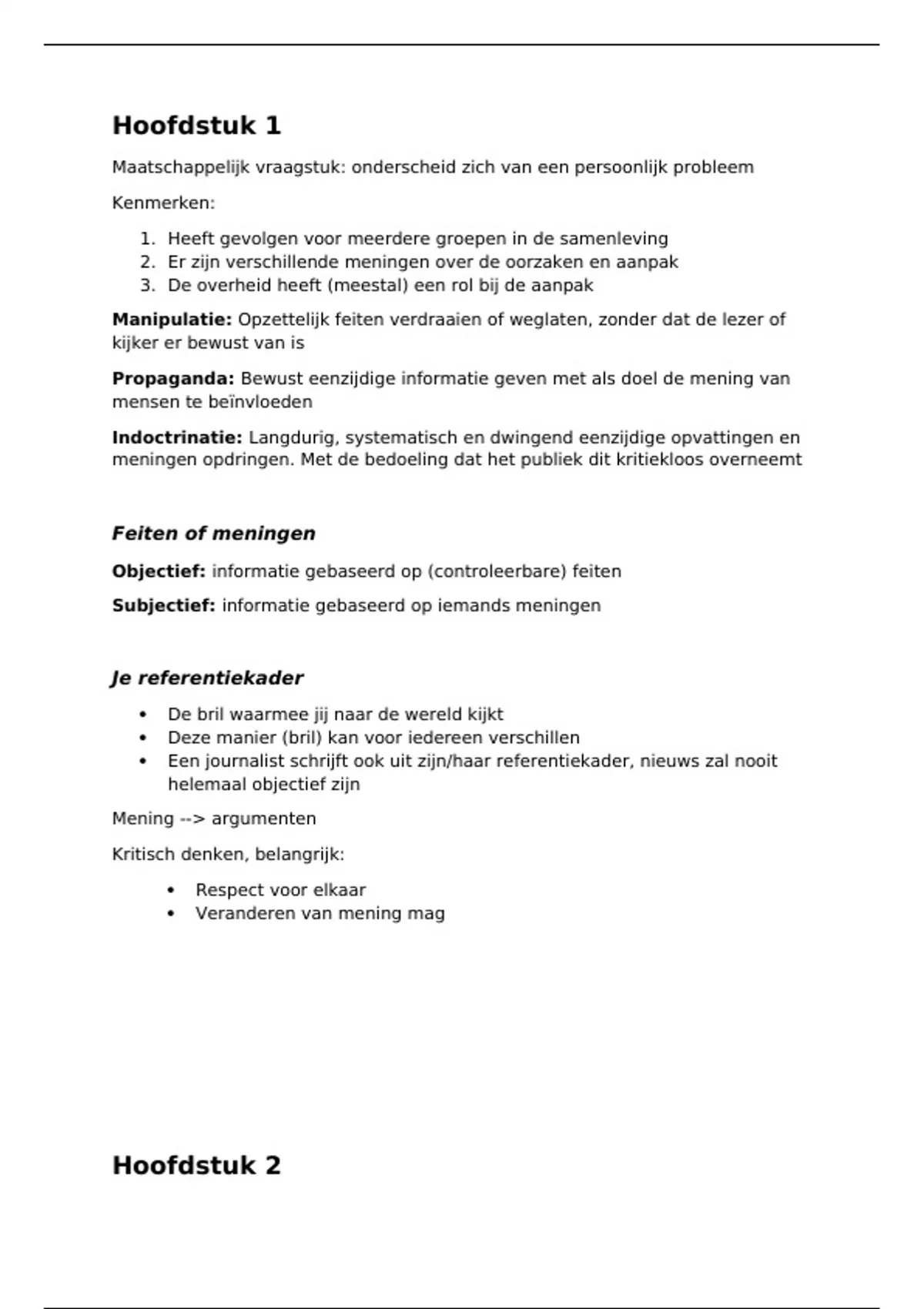 Samenvatting - Maatschappijleer Hoofdstuk 1 en 2