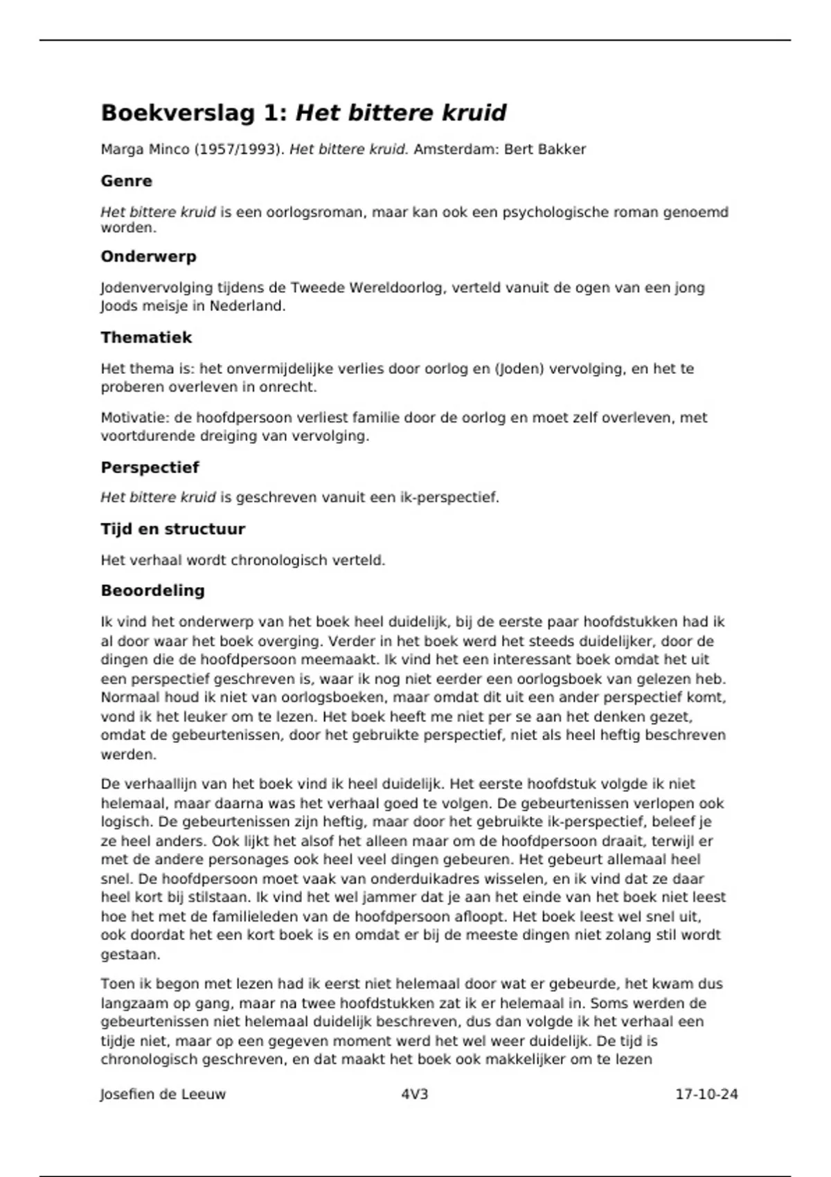 Boekverslag Nederlands het bittere kruid