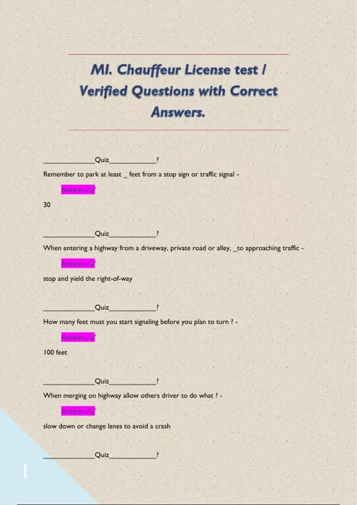 Remember to park at least _ feet from a stop sign or traffic signal -