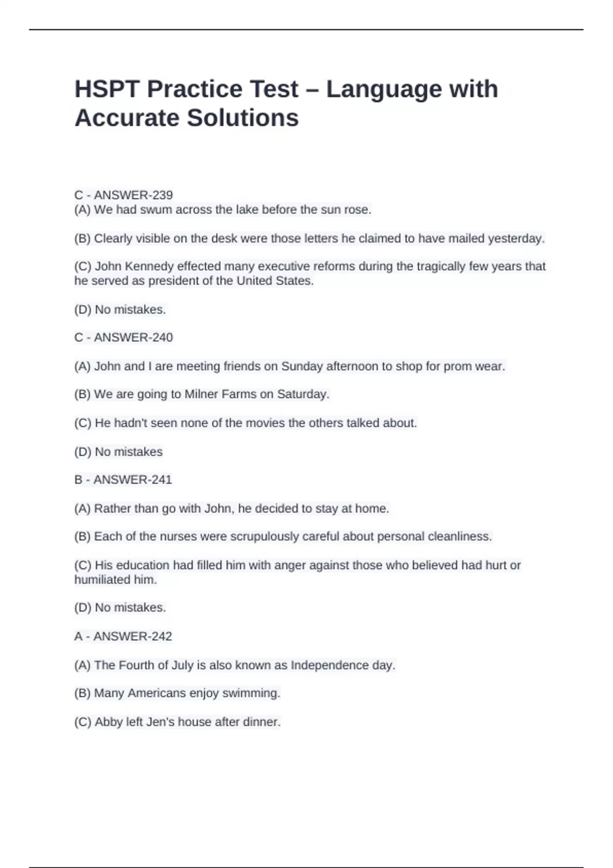 HSPT Practice Test – Language with