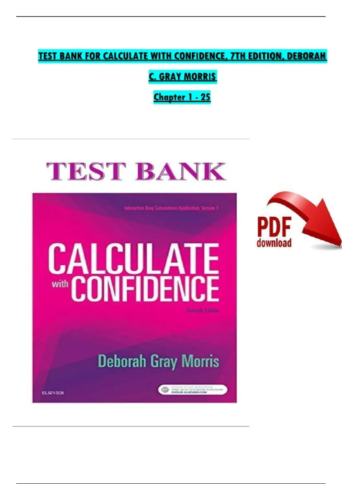 This complete test bank for Calculate with Confidence (7th Edition) by Deborah C. Gray Morris includes accurate and fully answered multiple-choice, fill-in-the-blank, and dosage calculation questions for Chapters 1 through 25. Topics covered include basic math review, ratio and proportion, dimensional analysis, medication administration, IV calculations, and safe dosage ranges. This resource is ideal for nursing students preparing for exams and instructors creating assessments focused on clinical calculations.