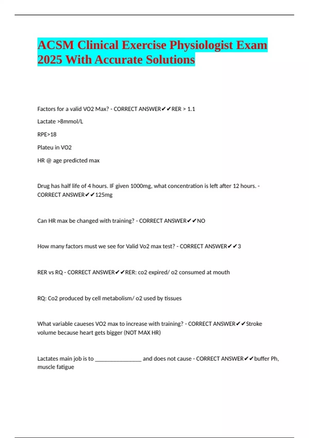 Factors for a valid VO2 Max? - CORRECT ANSWER✔✔RER > 1.1