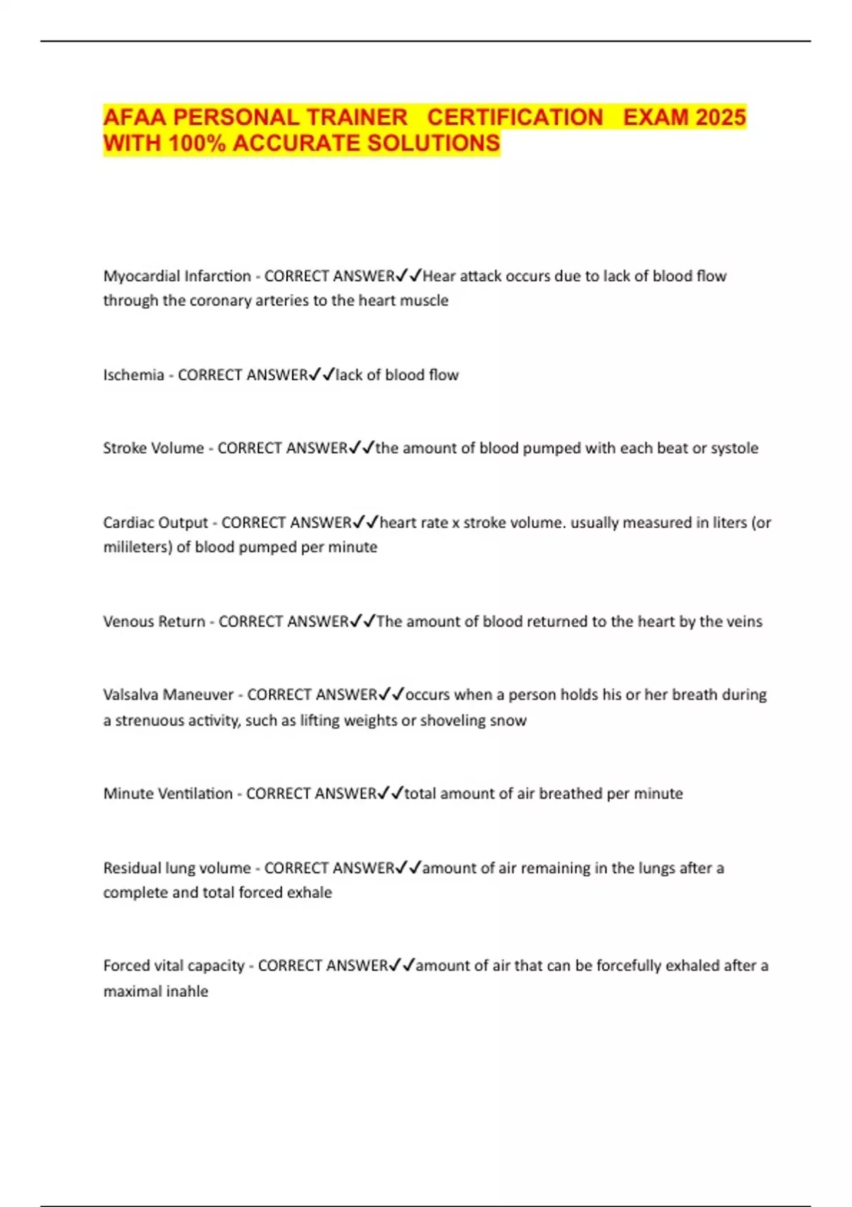 AFAA PERSONAL TRAINER CERTIFICATION EXAM 2025 WITH 100% ACCURATE SOLUTIONS