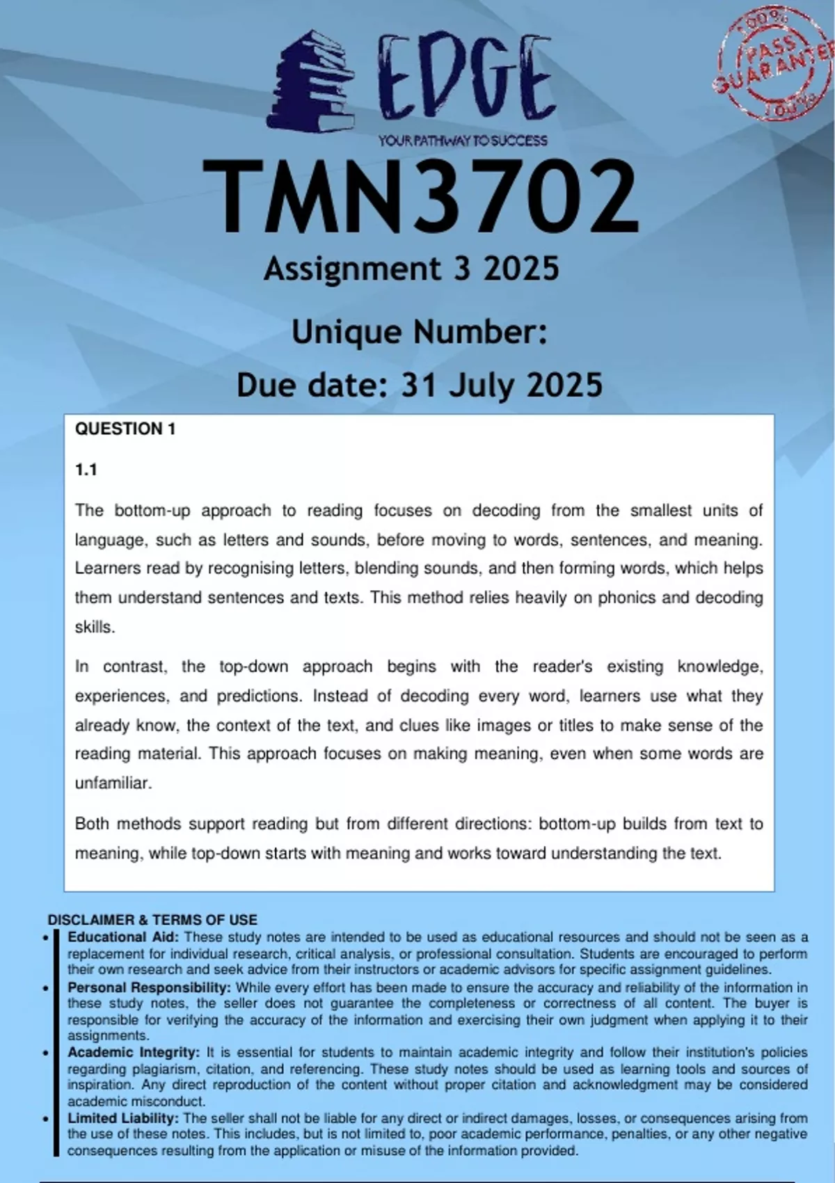 TMN3702 Assignment 3 (ANSWERS) 2025 - DISTINCTION GUARANTEED