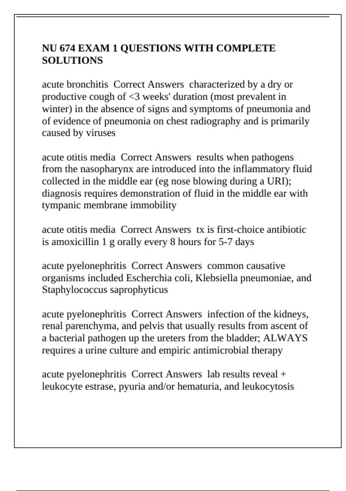 acute pyelonephritis Correct Answers infection of the kidneys,