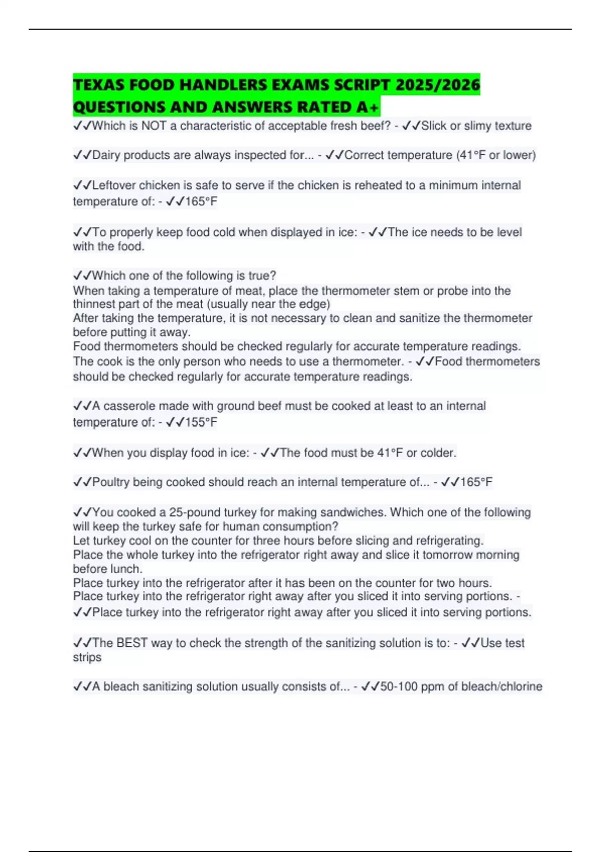 TEXAS FOOD HANDLERS EXAMS SCRIPT 2025/2026