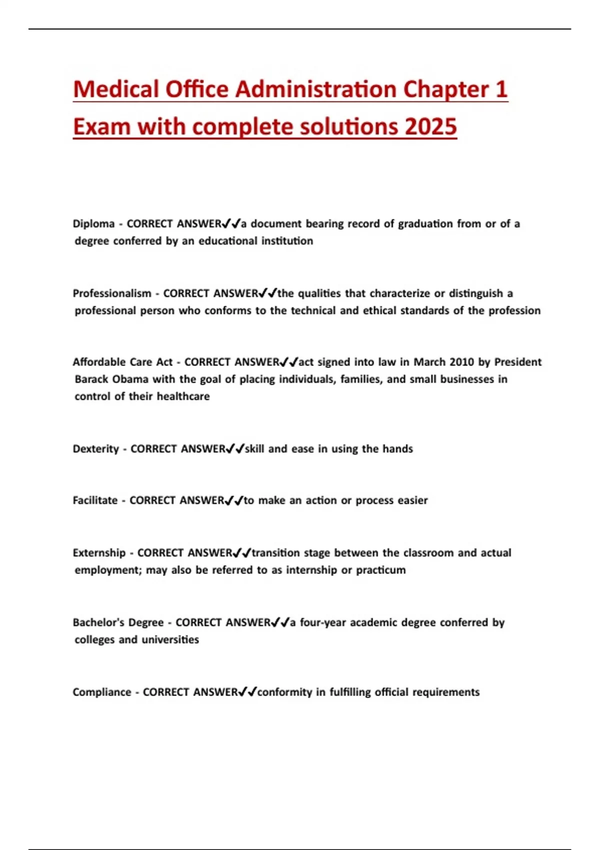 Medical Office Administration Chapter 1 Exam with complete solutions 2025.