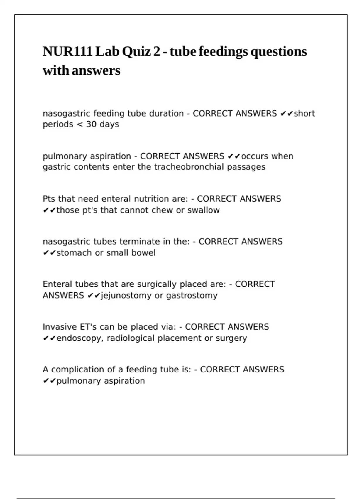 nasogastric feeding tube duration - CORRECT ANSWERS ✔✔short