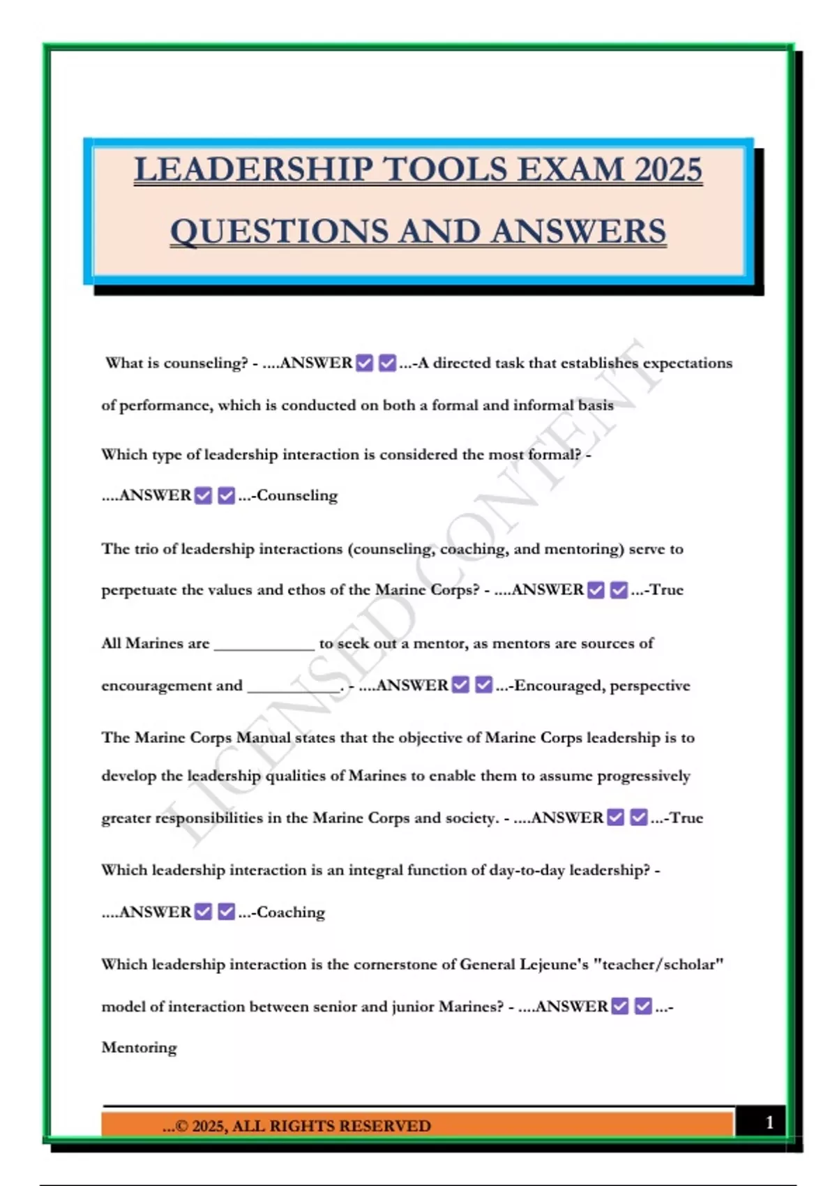 LEADERSHIP TOOLS EXAM 2025