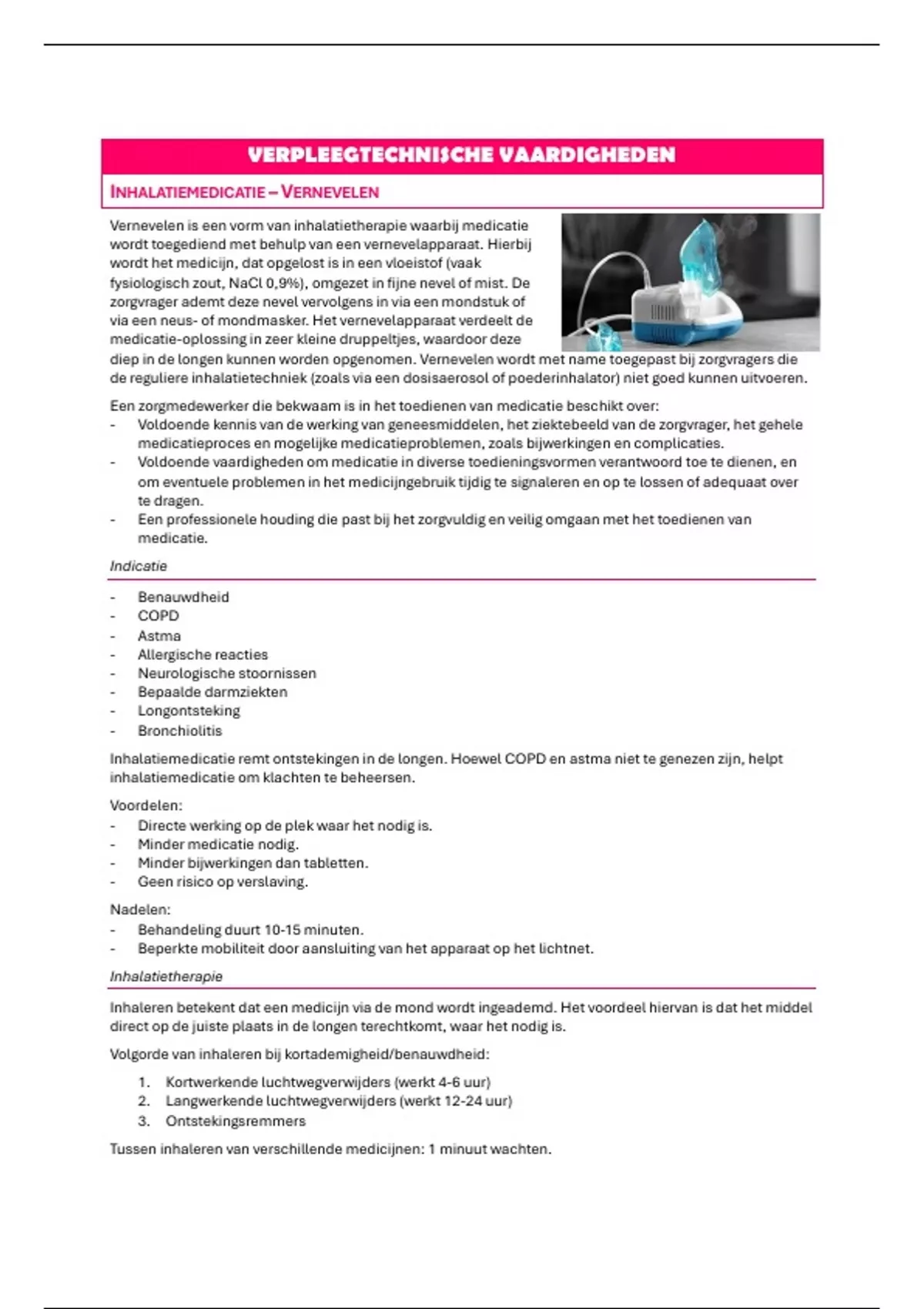 - Voldoende vaardigheden om medicatie in diverse toedieningsvormen verantwoord toe te dienen, en
