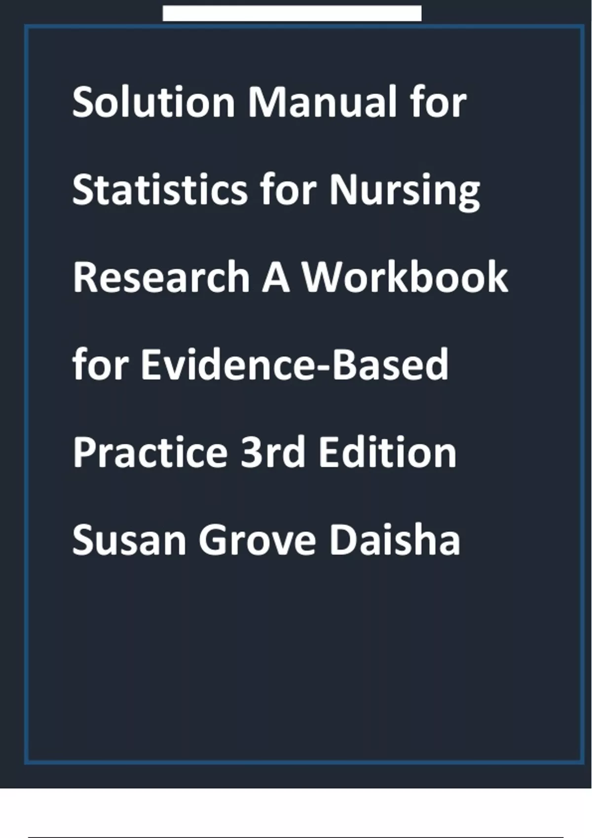 Solution Manual for Statistics for Nursing Research A Workbook for Evidence-Based Practice 3rd Edition Susan Grove Daisha