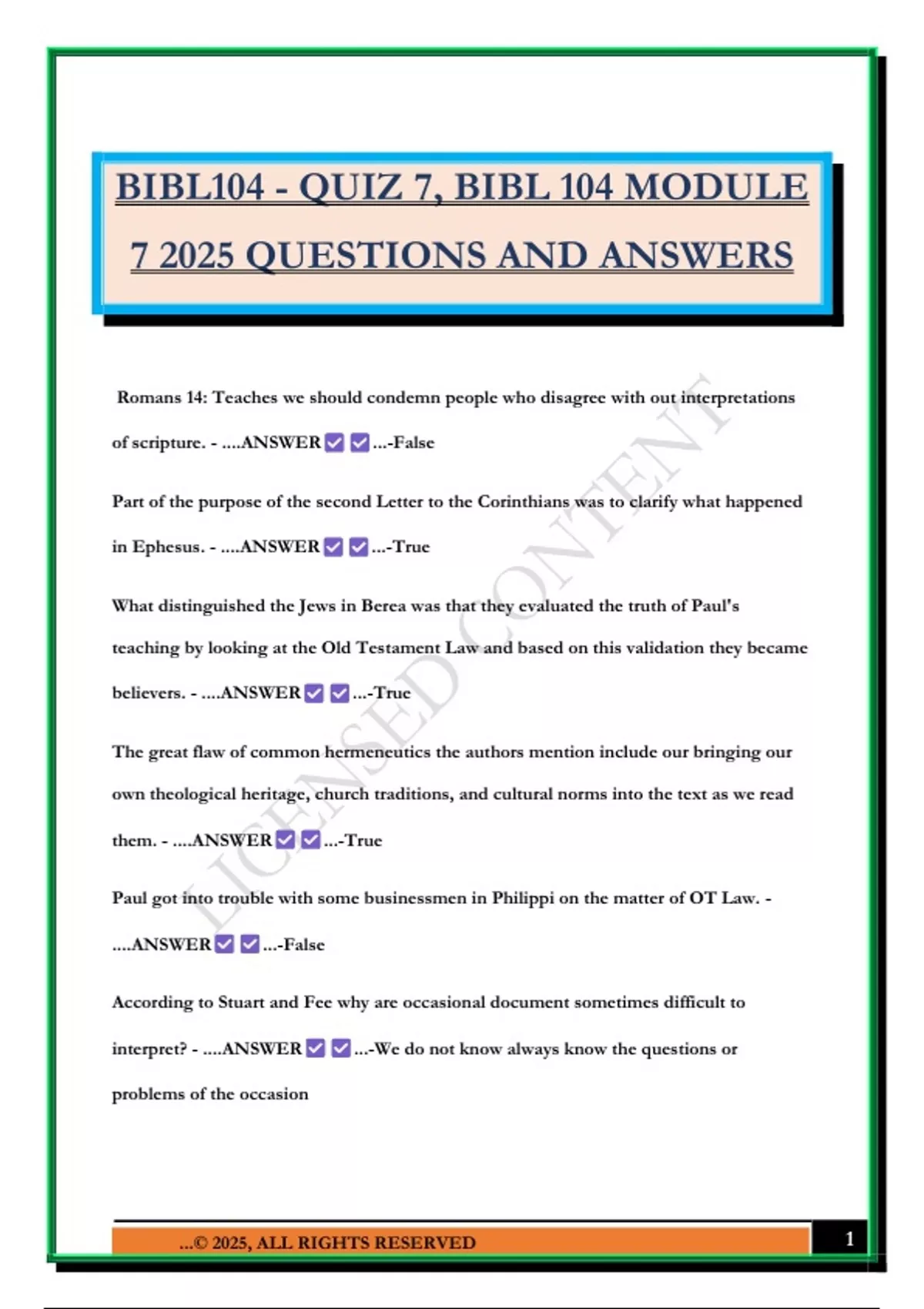 BIBL104 - QUIZ 7, BIBL 104 MODULE 7 2025 QUESTIONS AND ANSWERS