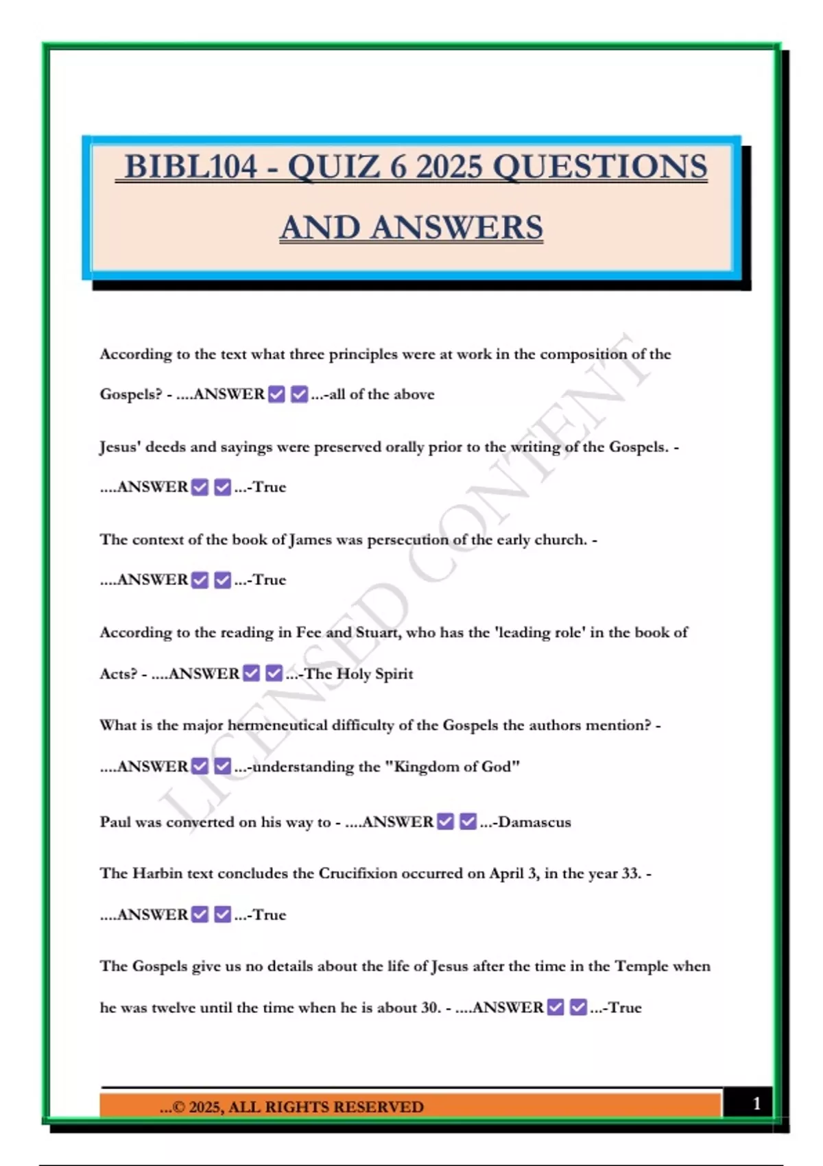 BIBL104 - QUIZ 6 2025 QUESTIONS