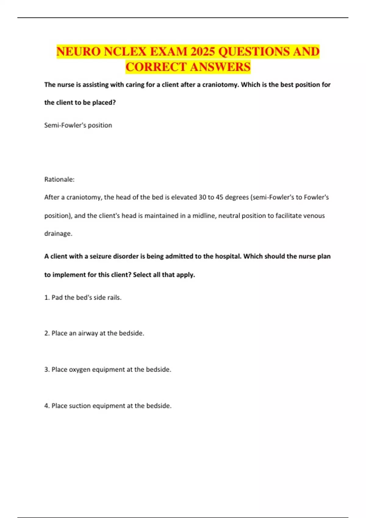 NEURO NCLEX EXAM 2025 QUESTIONS AND