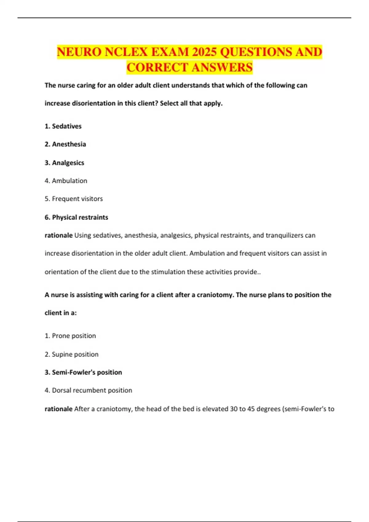 NEURO NCLEX EXAM 2025 QUESTIONS AND