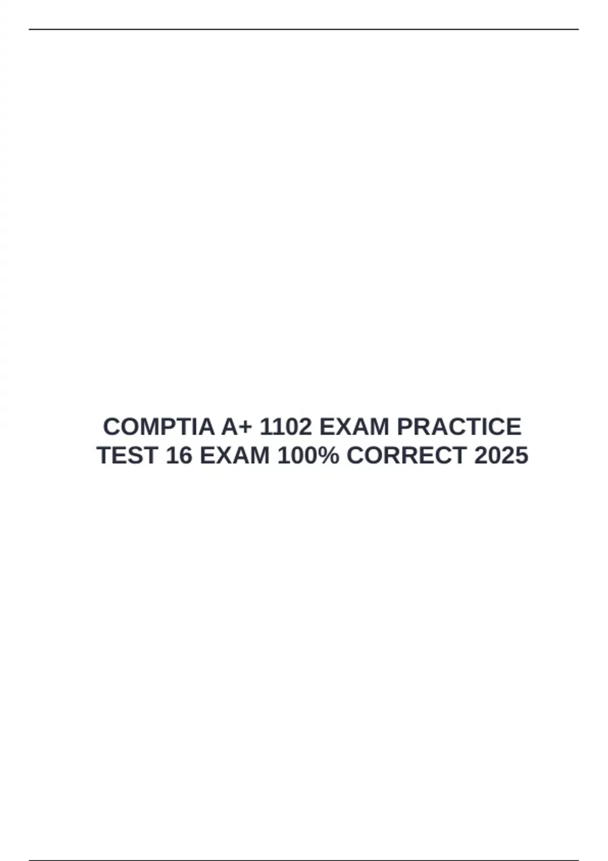 COMPTIA A+ 1102 EXAM PRACTICE TEST 16 EXAM 100% CORRECT 2025