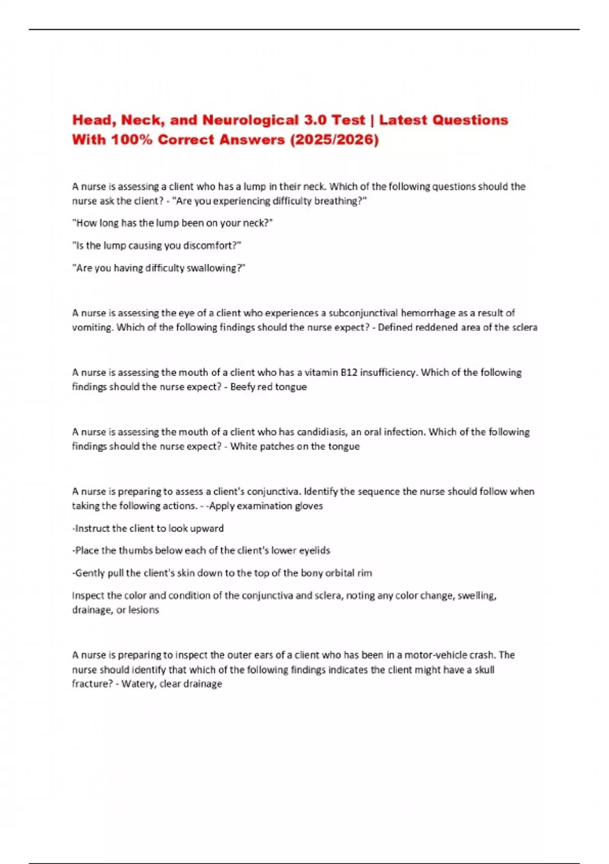 Head, Neck, and Neurological 3.0 Test | Latest Questions With 100% Correct Answers (2025/2026)