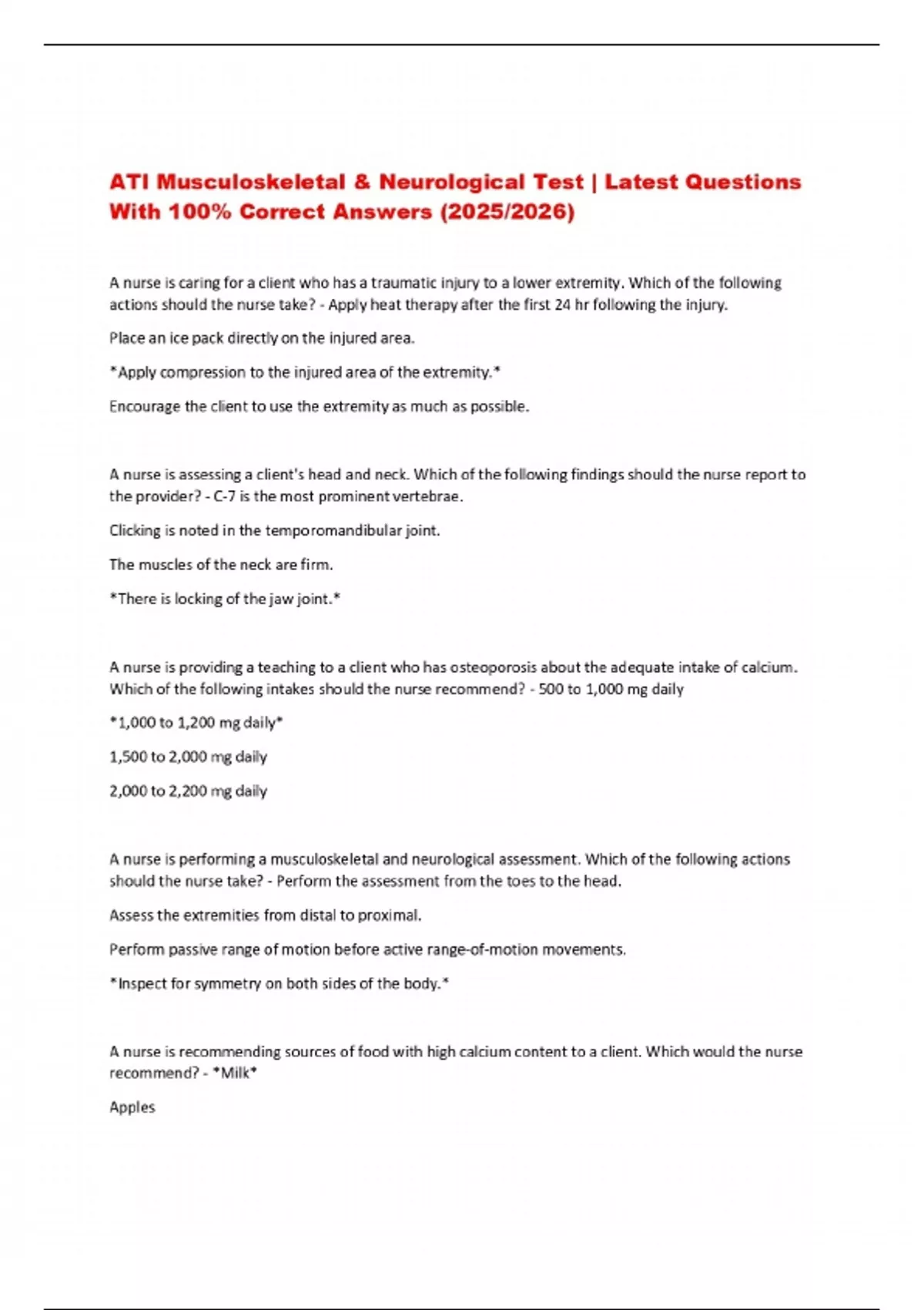 ATI Musculoskeletal & Neurological Test | Latest Questions With 100% Correct Answers (2025/2026)
